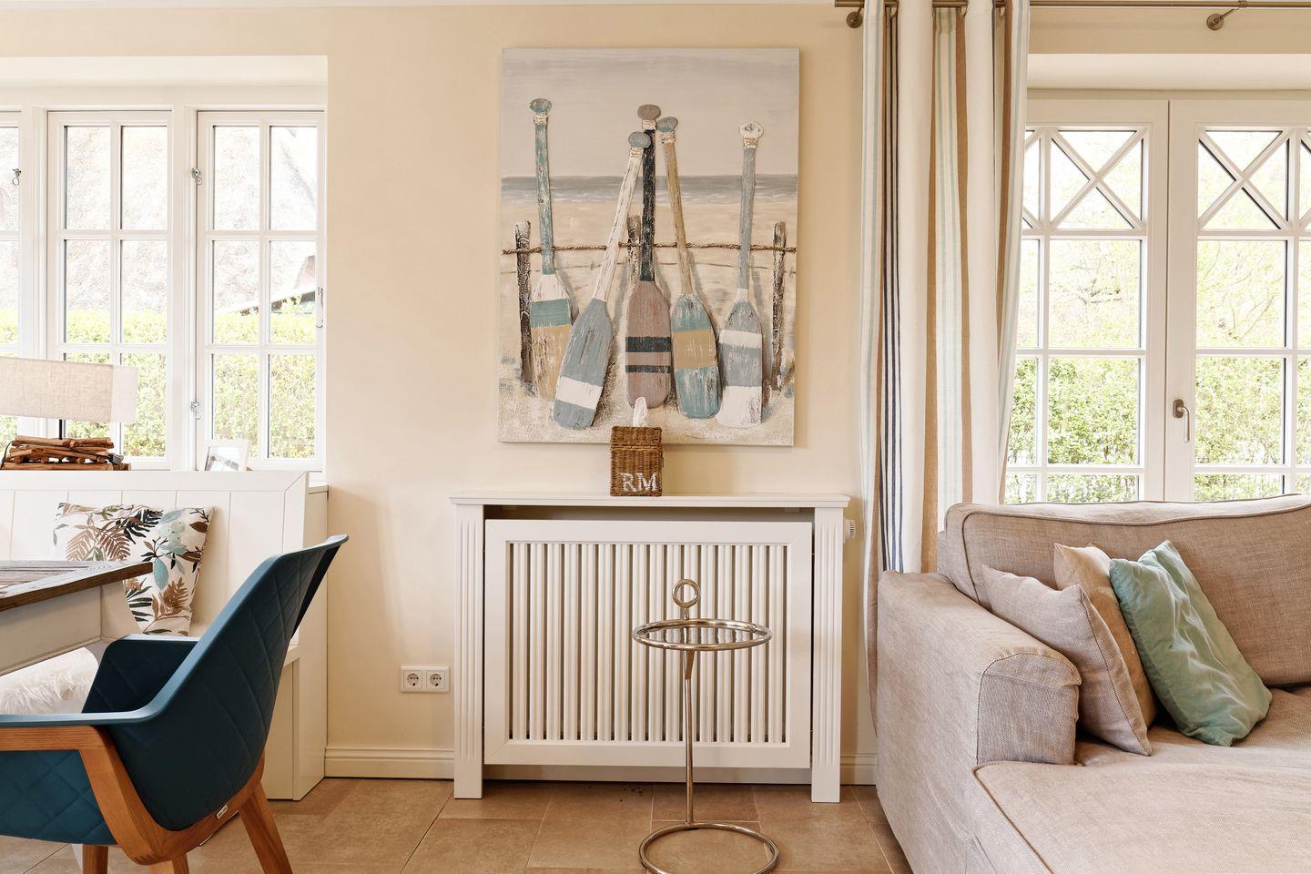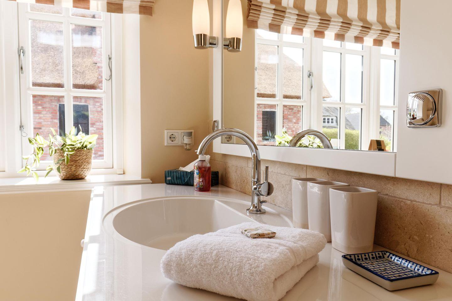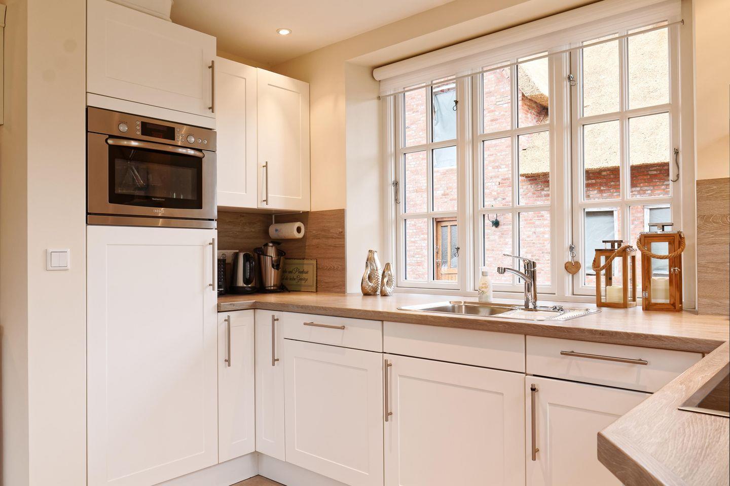 Das reetgedeckte Ferienhaus Dorftraum verfügt über 2 Schlafzimmer und 2 Bäder und bietet somit komfortabel Platz für bis zu 4 Personen zuzüglich einer Kleinkinderaufbettung.