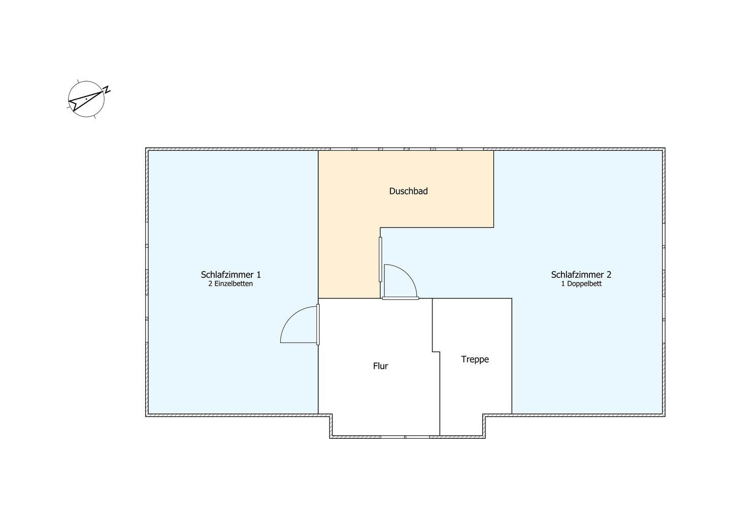 - 2 x Einzelbett (Offenes Fußteil)