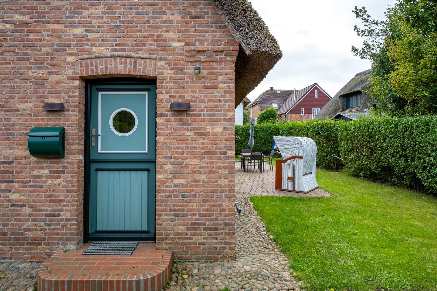 Der großzügige Garten verläuft um das gesamte Ferienhaus und ein bepflanzter Friesenwall grenzt das Grundstück zur anliegenden Straße ab. Eine Unterstellmöglichkeit für Ihre Fahrräder und ein eigener PKW-Stellplatz am Haus runden das Angebot ab.
