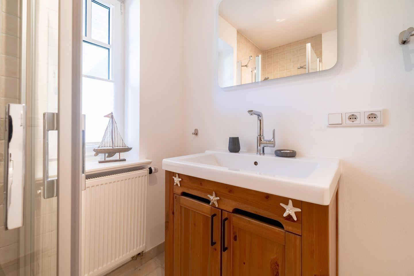 Über die Treppe erreichen Sie das 1. OG. Hier befinden sich drei weitere Schlafzimmer, eins davon ist ebenfalls mit einem Smart-TV ausgestattet. Das Saunazimmer verfügt über eine hochwertige Sauna samt Liegebereich. Das Badezimmer ist mit einer Dusche und einer Badewanne ausgestattet. In allen Schlafzimmern befinden sich Doppelbetten und Einbauschränke, welche vom Tischler angefertigt wurden.