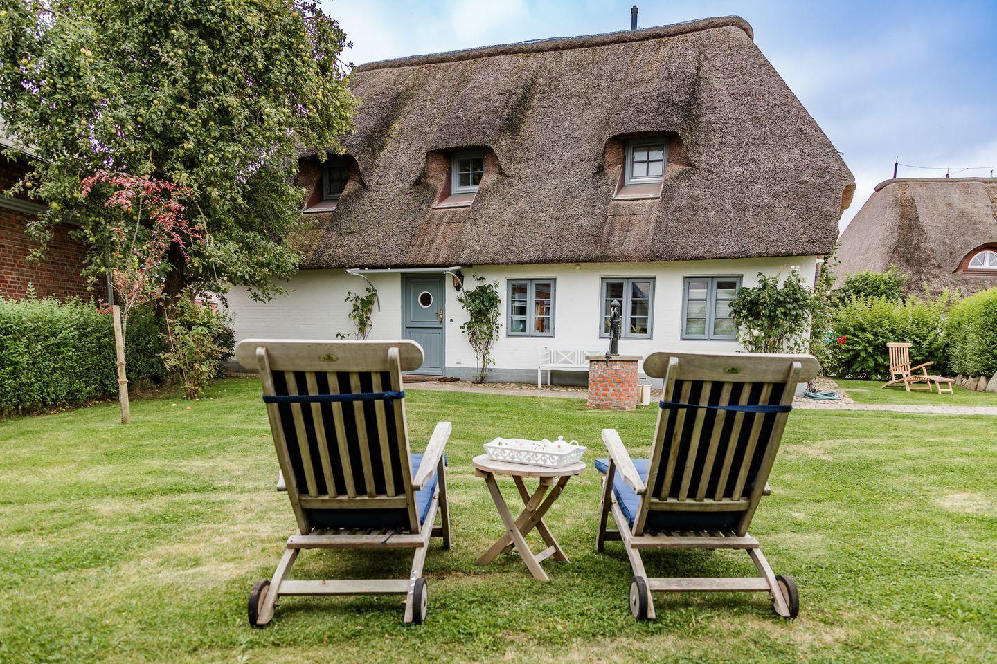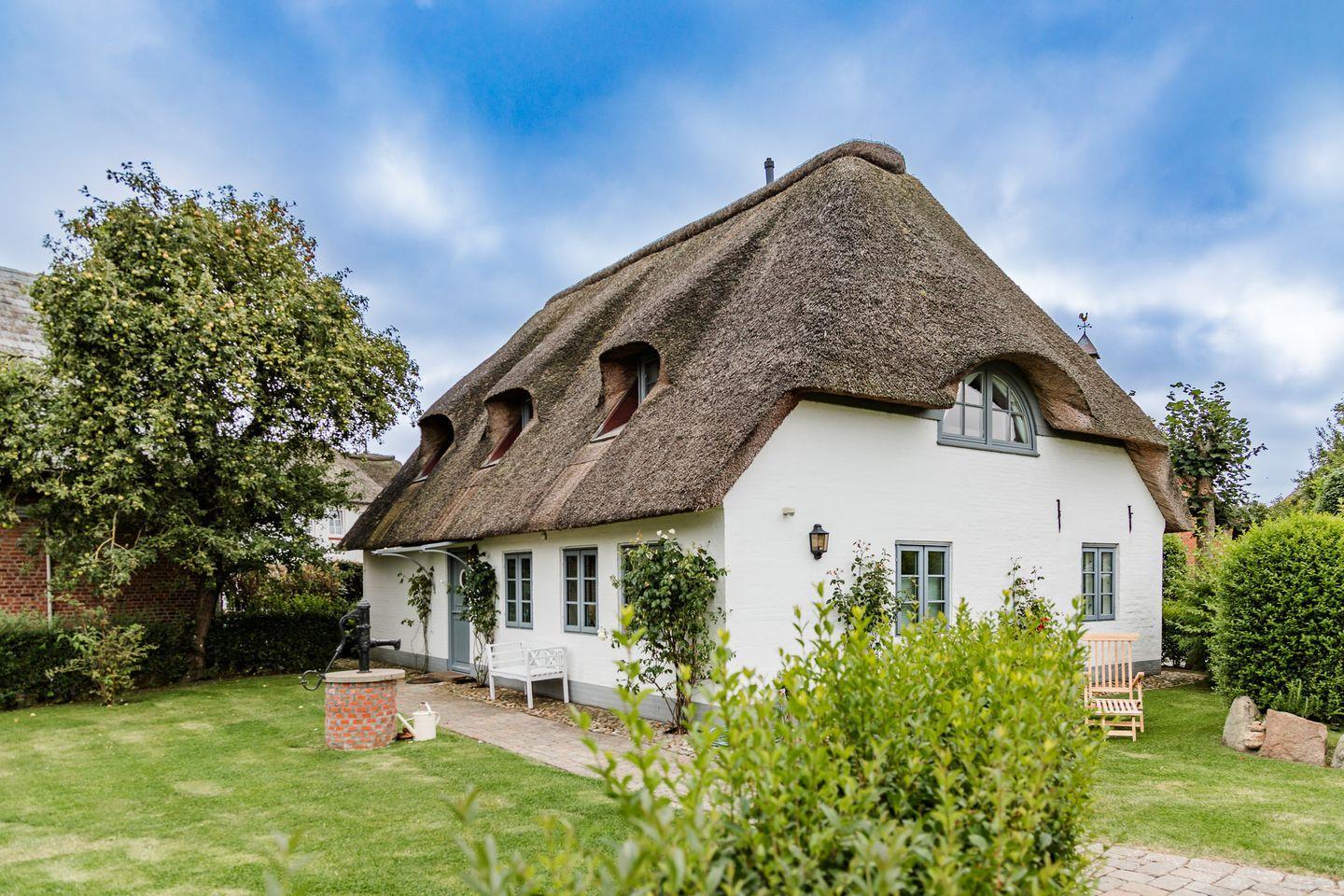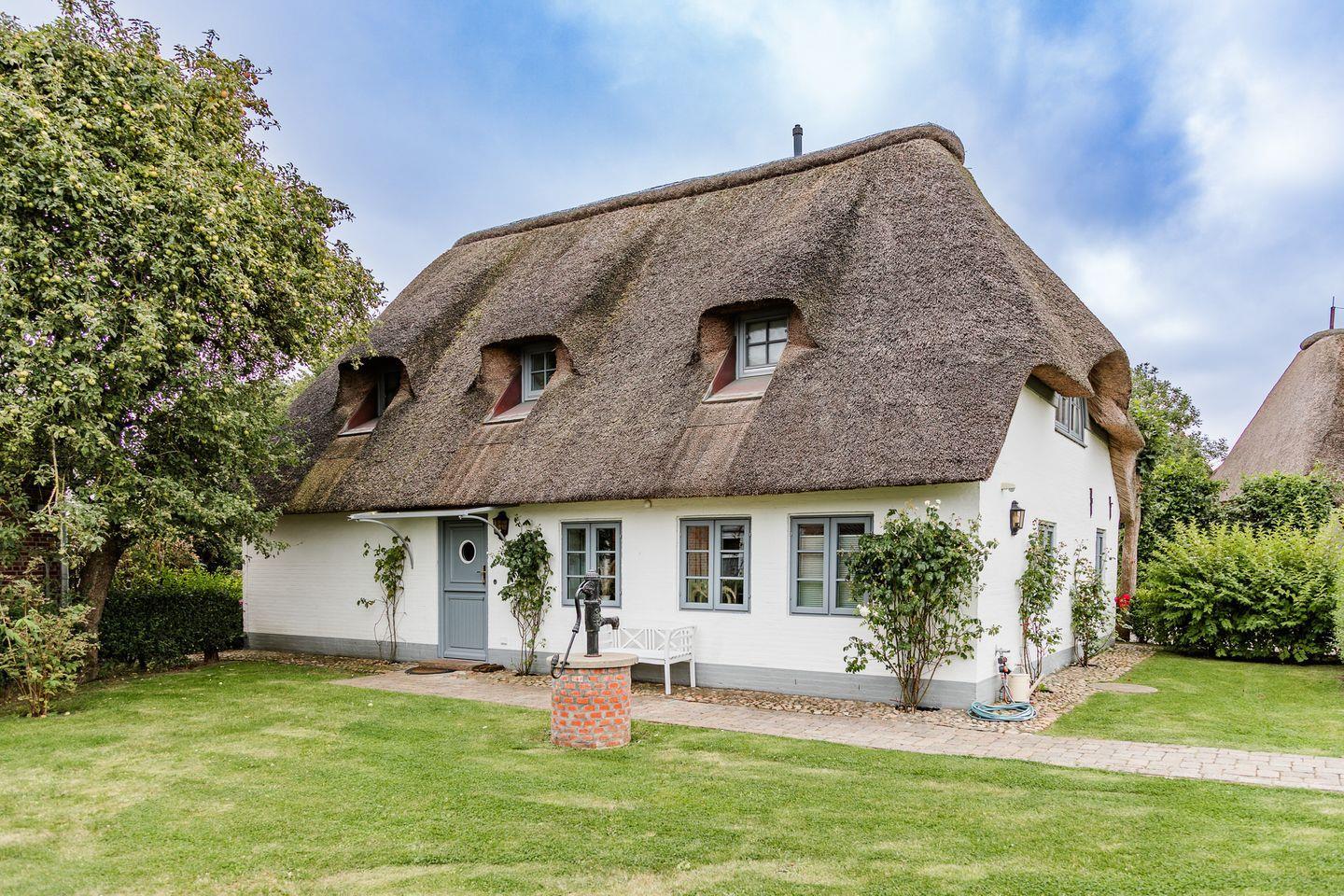 Entdecken Sie das reetgedeckte Ferienhaus Anno 1799 mit Sauna, großem Garten und moderner Ausstattung auf Föhr.