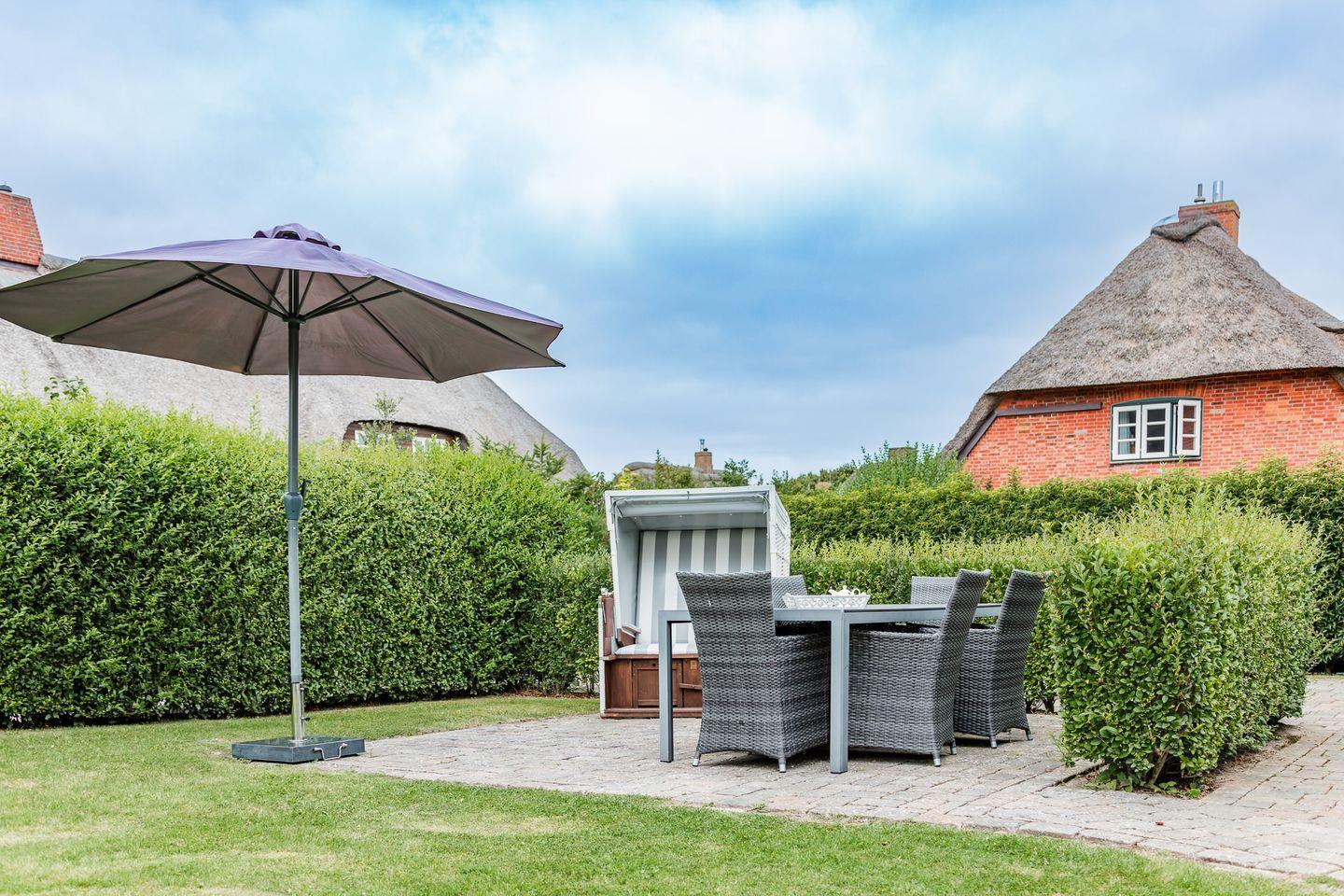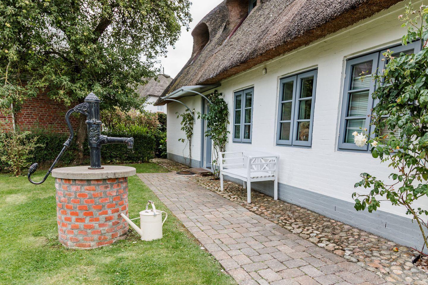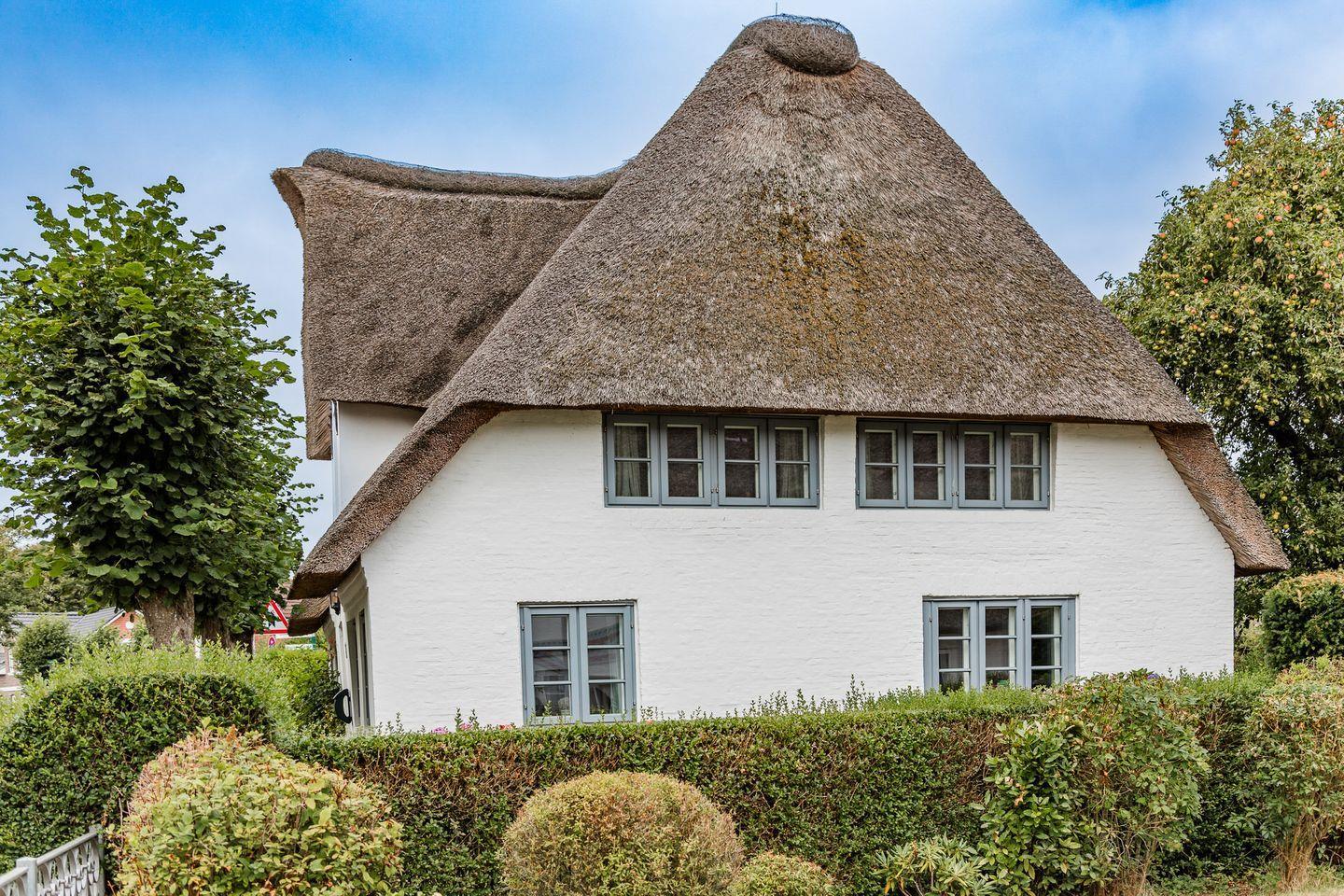 Entdecken Sie das reetgedeckte Ferienhaus Anno 1799 mit Sauna, großem Garten und moderner Ausstattung auf Föhr.