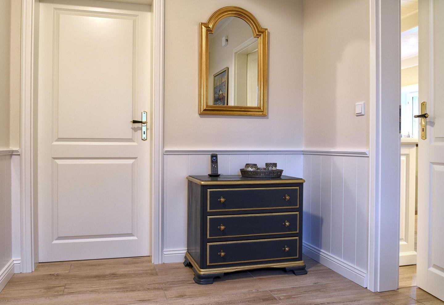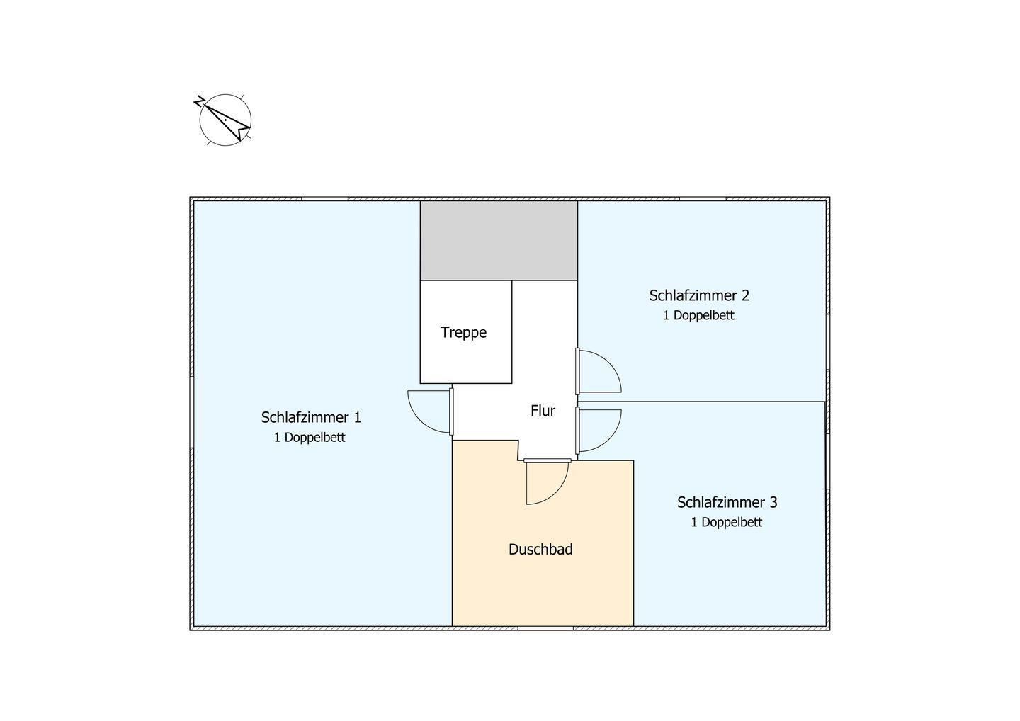 Im Obergeschoss befinden sich alle drei Schlafzimmer sowie ein weiteres Badezimmer. Ein Schlafzimmer ist mit einem Queensize-Bett (140 cm) ausgestattet und die anderen beiden Zimmer mit jeweils einem Doppelbett. Alle drei Schlafzimmer verfügen über einen Smart-TV und einen Kleiderschrank. In dem modern eingerichteten Badezimmer befindet sich eine Regendusche.