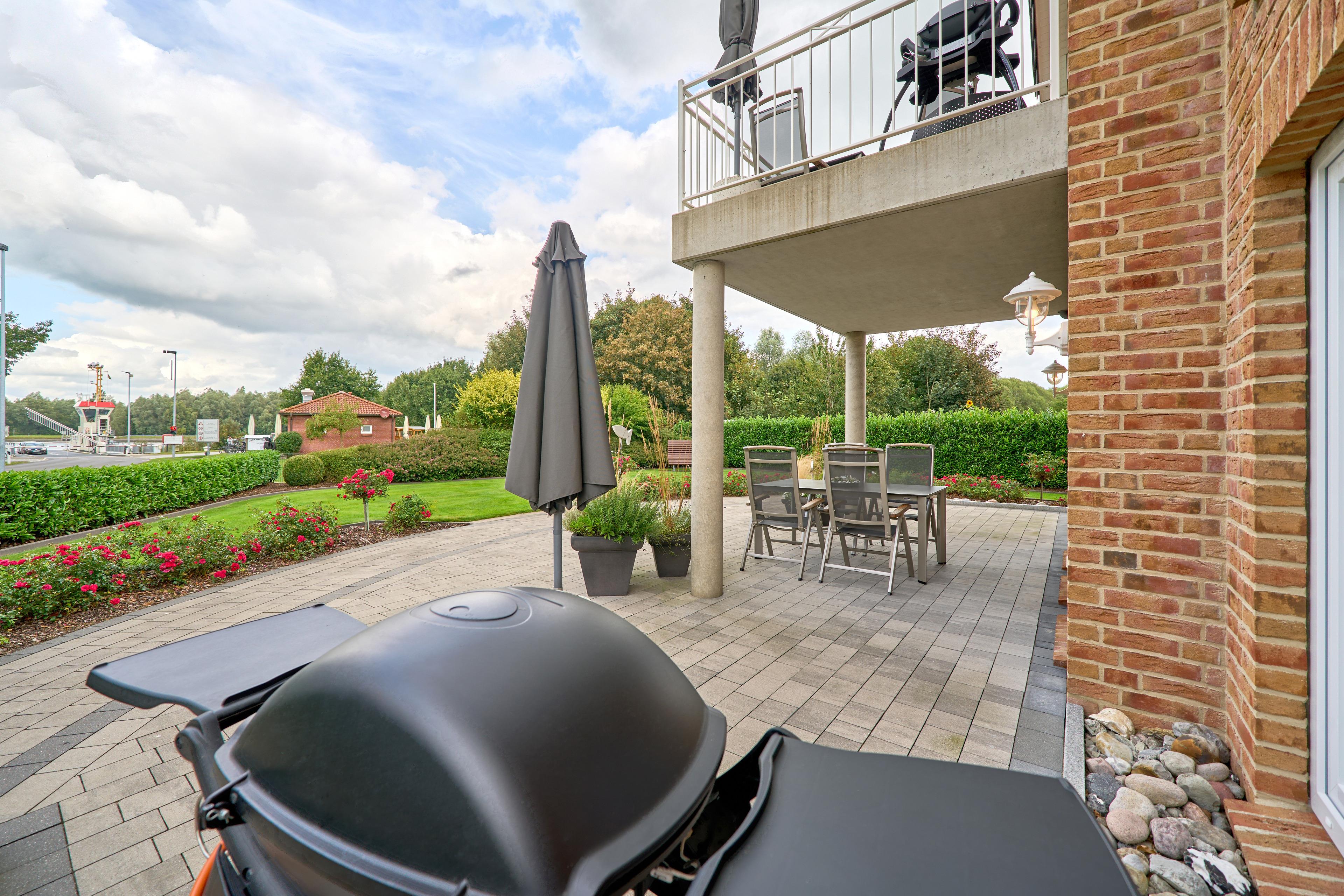 Moderne Ferienwohnung am Nord-Ostsee-Kanal mit großer Terrasse und hochwertiger Ausstattung für entspannte Urlaubstage.