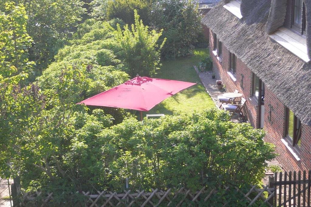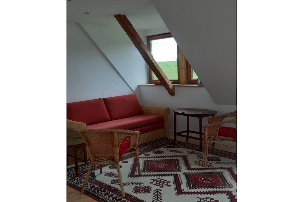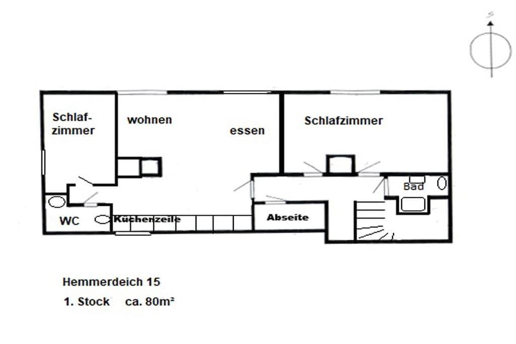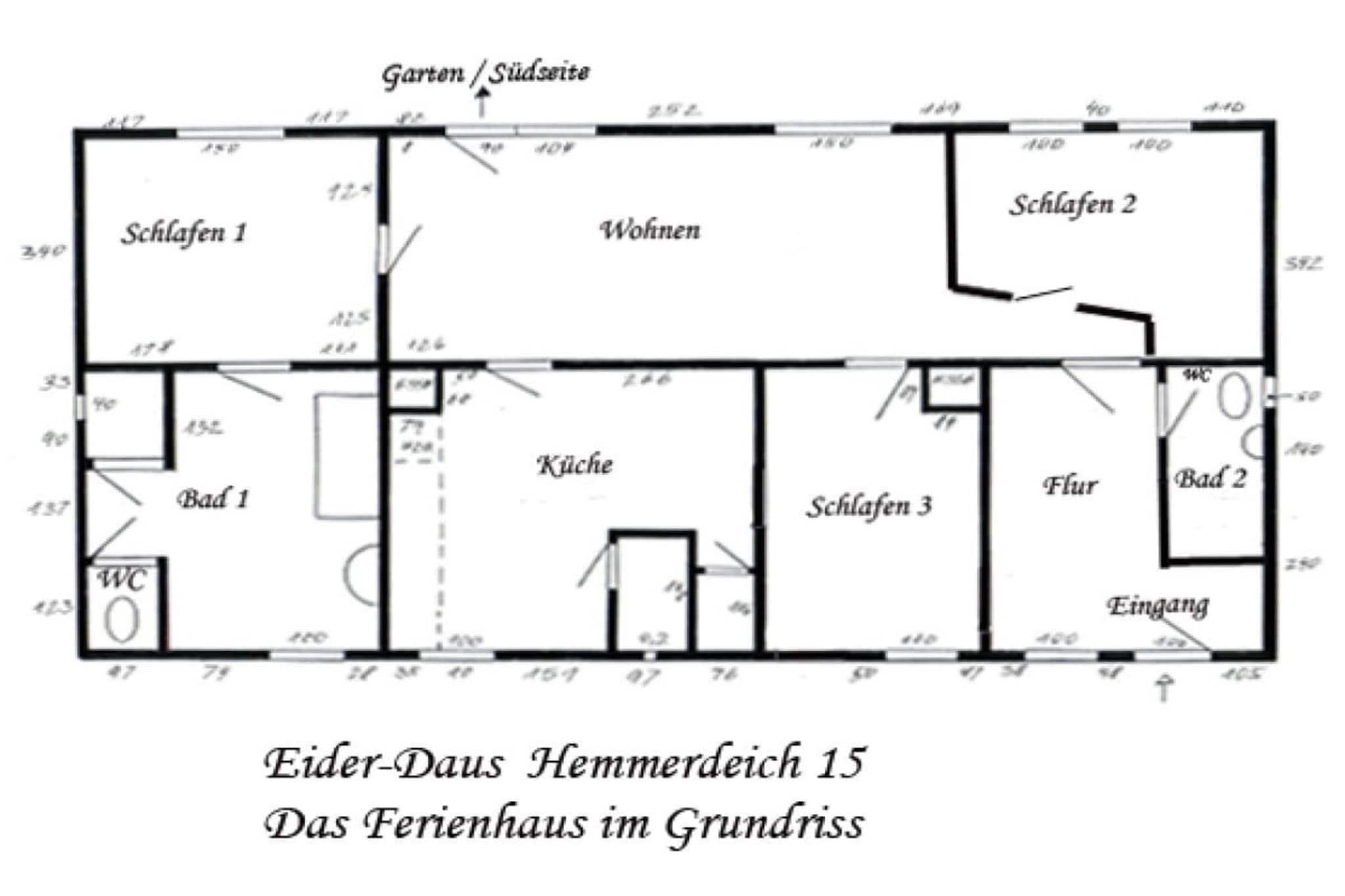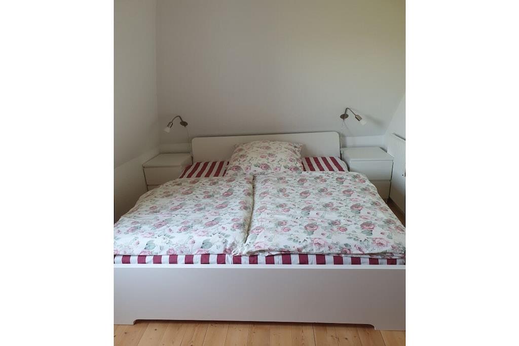 Ob zu zweit, zu viert, zu acht oder zu zehnt - in diesem wunderschönen großen Haus wohnen Sie immer allein. Sie mieten entweder das Dreiviertelhaus mit einer Küche, einem Wohnraum, drei Bädern und vier Schlafräumen oder Sie mieten das ganze Haus. In dem Fall steht Ihnen noch eine weitere etwas kleinere Wohnung (60qm) zur Verfügung (mit zweiter Küche, zweitem Wohnzimmer, fünftem Schlafzimmer und Gästetoilette). Gegen einen Aufpreis von 40EURO/Nacht und einer Putzpauschale von zusätzlich 30,-EURO können Sie diese zweite Wohnung oben dazumieten. Diesen Aufpreis für die 2. Wohnung finden Sie nicht der Preistabelle. Bei Buchungen ab 9 Personen muss die obere zusätzliche Wohnung obligatorisch dazu gemietet werden. Bitte setzen Sie sich bei Fragen gern mit uns telefonisch in Verbindung! Vom Wohnraum unten führt eine Terrassentür zur Südseite des Gartens mit einer kleinen, aber sonnigen und geschützten Sitzecke. Im vorderen Bereich des 1000qm großen Grundstücks gibt es drei Autostellplätze und es ist viel Platz zum Toben und Spielen. Unser reetgedecktes, idyllisches Ferienhaus liegt direkt hinter dem Eiderdeich. Von hier aus können Sie weite Spaziergänge ins Naturschutzgebiet machen.