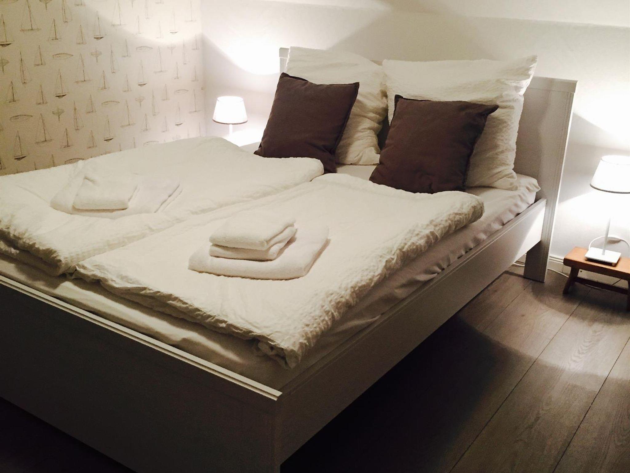 Es erwartet Sie ein liebevoll eingerichtetes kleines Haus. Im Erdgeschoss finden Sie eine kleine neue Einbauküche (Herd, Kühlschrank, Geschirrspüler etc.) mit angrenzendem Ess - und Wohnzimmer. Es gibt ein Bad mit Dusche und ein Gäste - WC. Im Obergeschoss gibt es ein Schlafzimmer mit Doppelbett (140cm x 200 cm) und ein kleines Zimmer mit einem Etagenbett (1m x 2m). So finden 4 Personen einen idealen Schlafplatz.