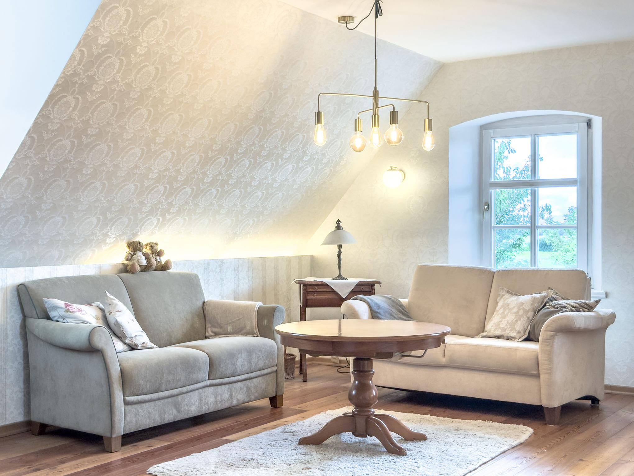 Einladender Wohnbereich mit viel Tageslicht und Blick ins Grüne – perfekt für ruhige Abende, Spiele oder gemeinsame Stunden.