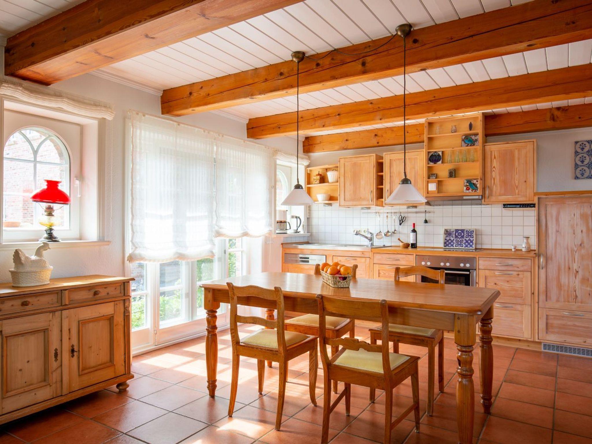 Das Herzstück des Hauses ist der im EG liegende lichtdurchflutete Wohn-Essbereich inklusiv der offenen Küche mit ca. 50 m². Eingerichtet teilweise mit antiken Möbeln und einem Altfriesischen Pyramidenofen bietet er Zeit für gemütliche und erholsame Stunden.