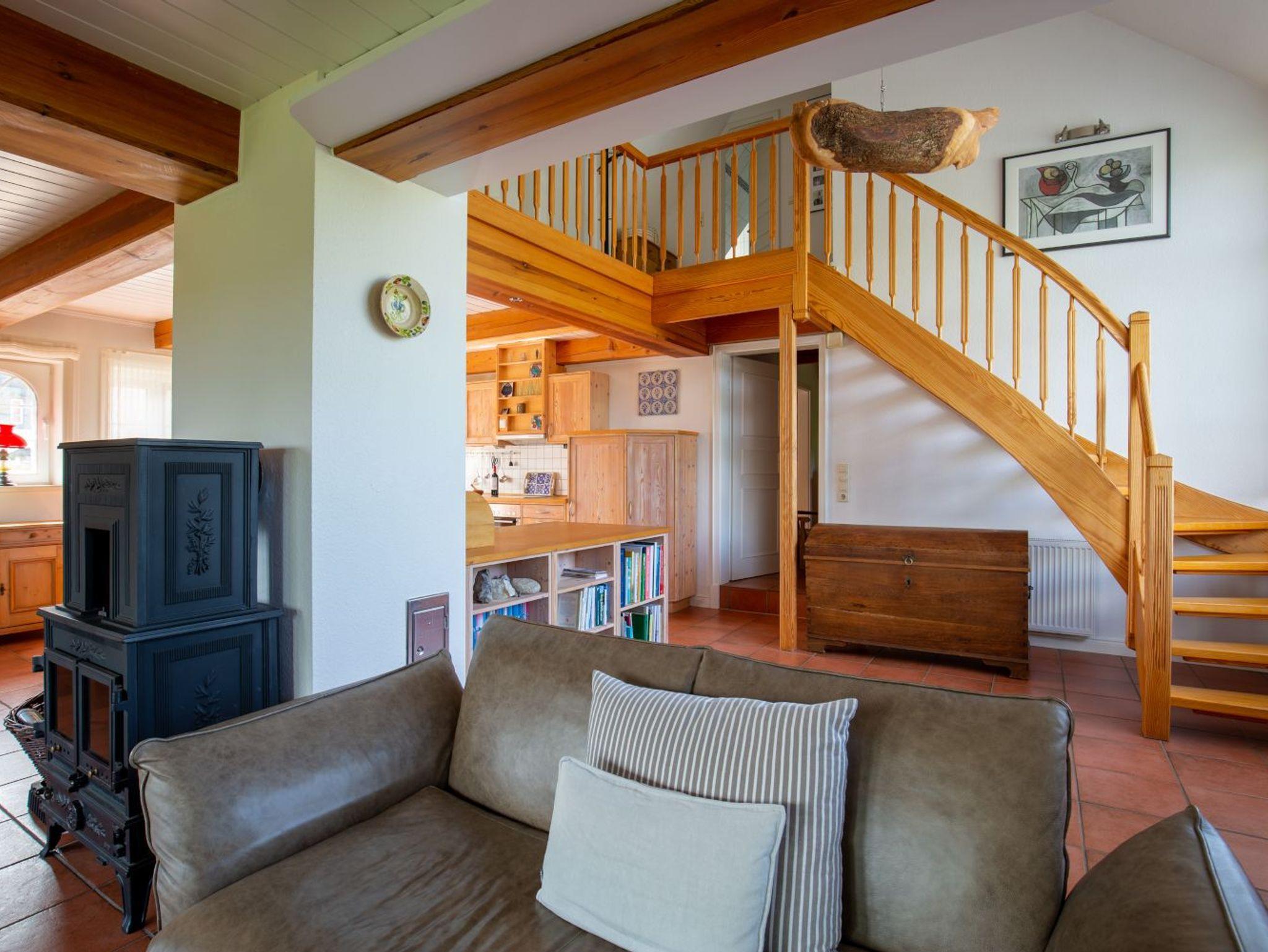 Über eine offene Holztreppe gelangt man in den Galeriebereich mit 3 Schlafzimmern, insgesamt 6 Schlafplätzen und 2 weiteren Bädern.