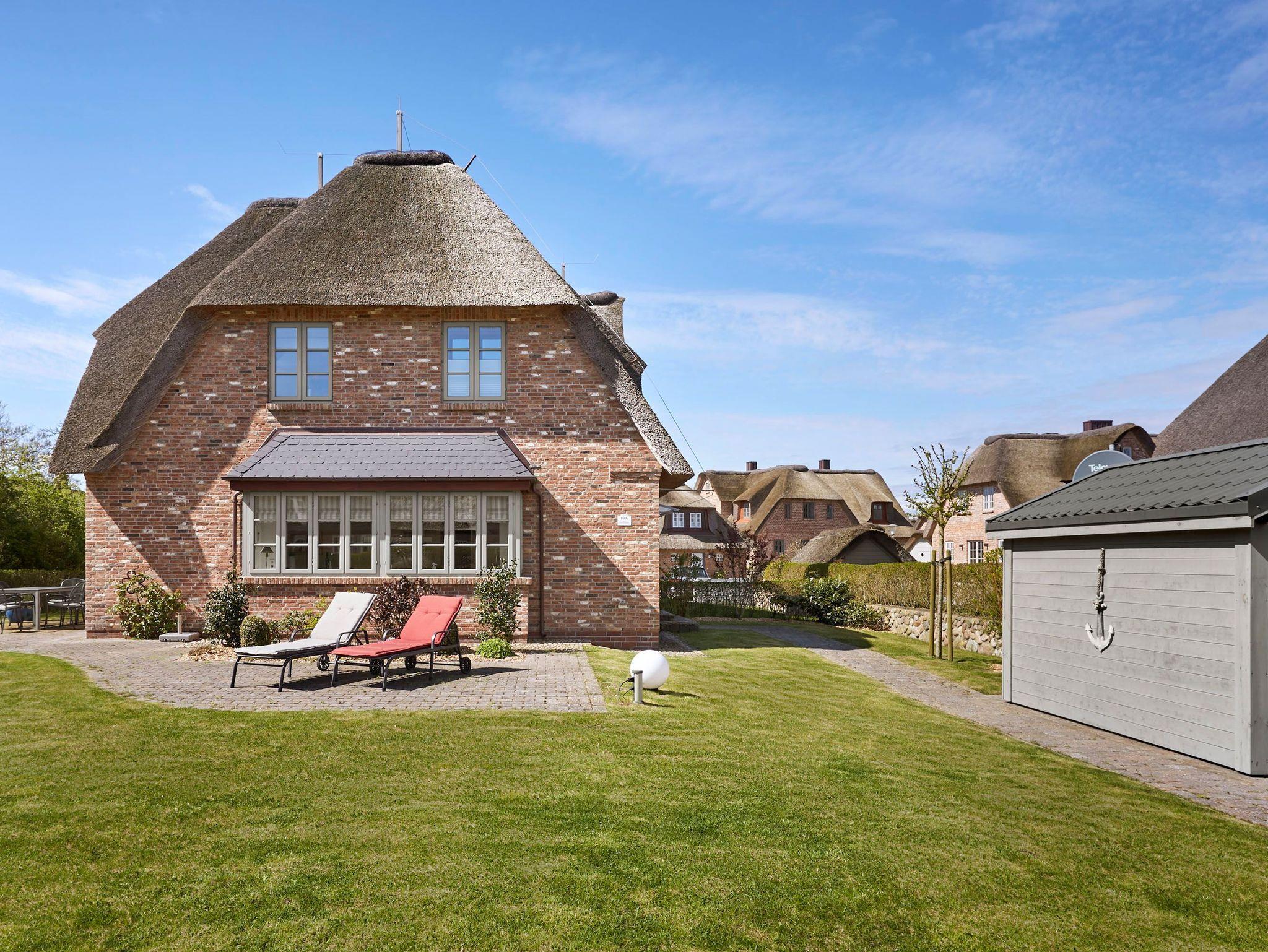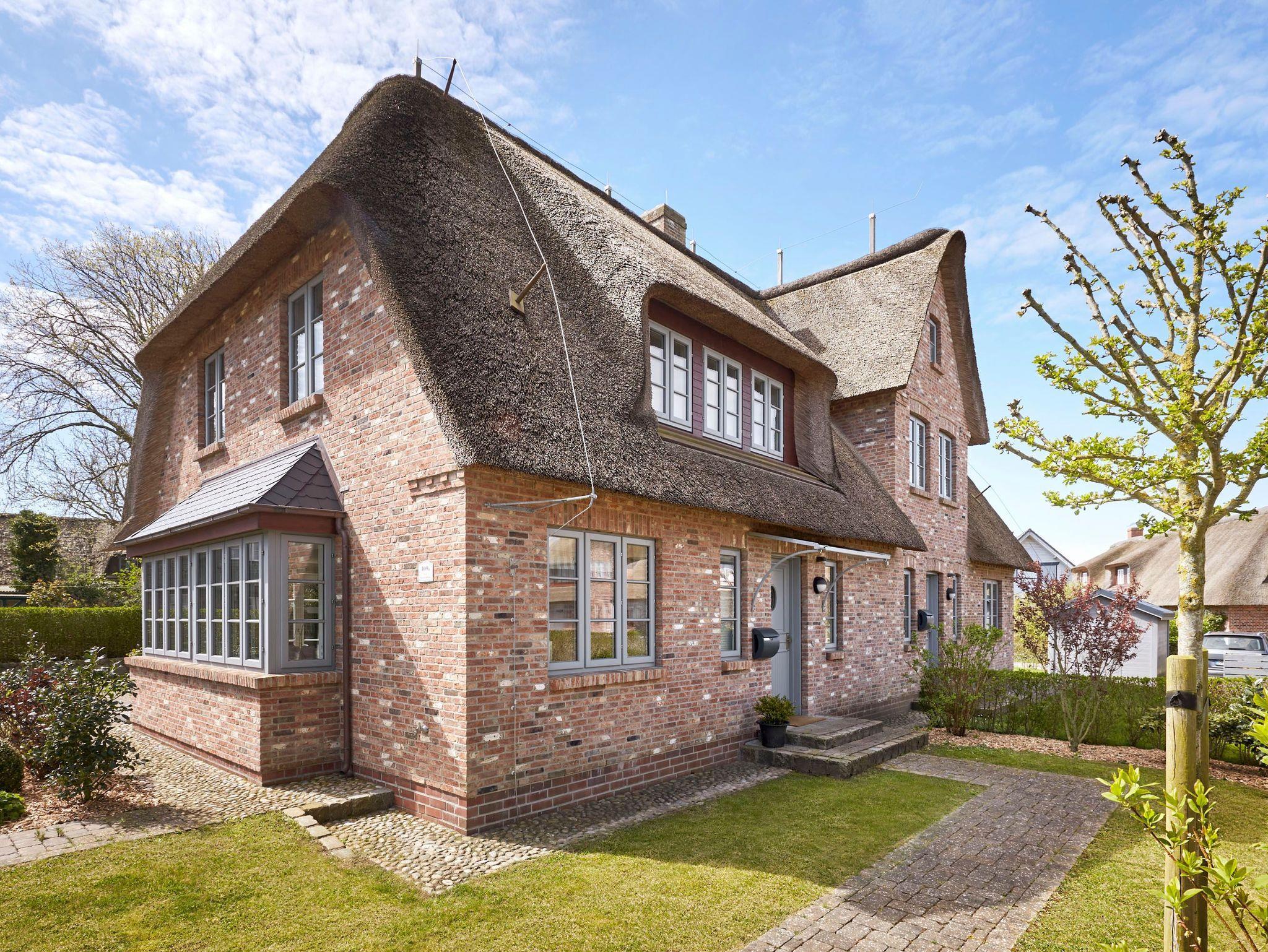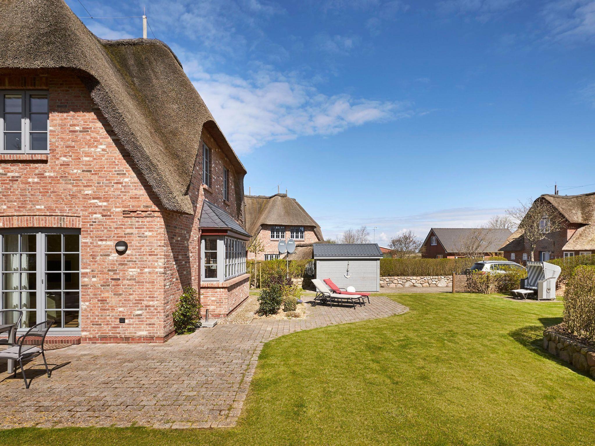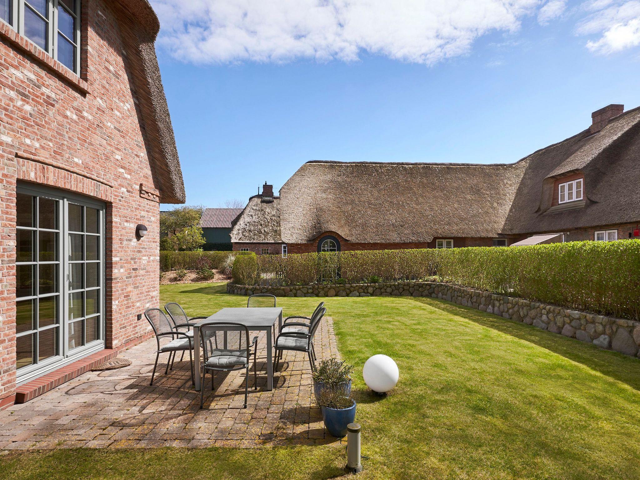 Hüs Freesenborg in Oldsum bietet stilvolles Wohnen mit Garten, Terrassen und Blick auf Friesenhäuser und Marschwiesen.