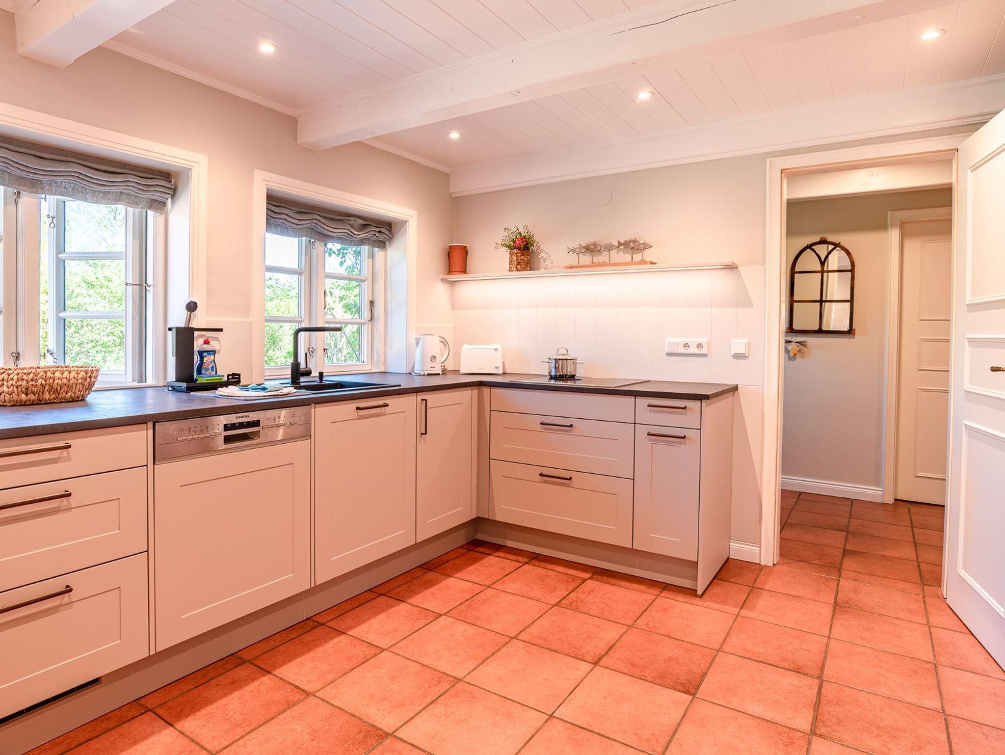 Alle Räume im Erdgeschoss sind mit Bodenfliesen ausgestattet. Diele und Schlafräume