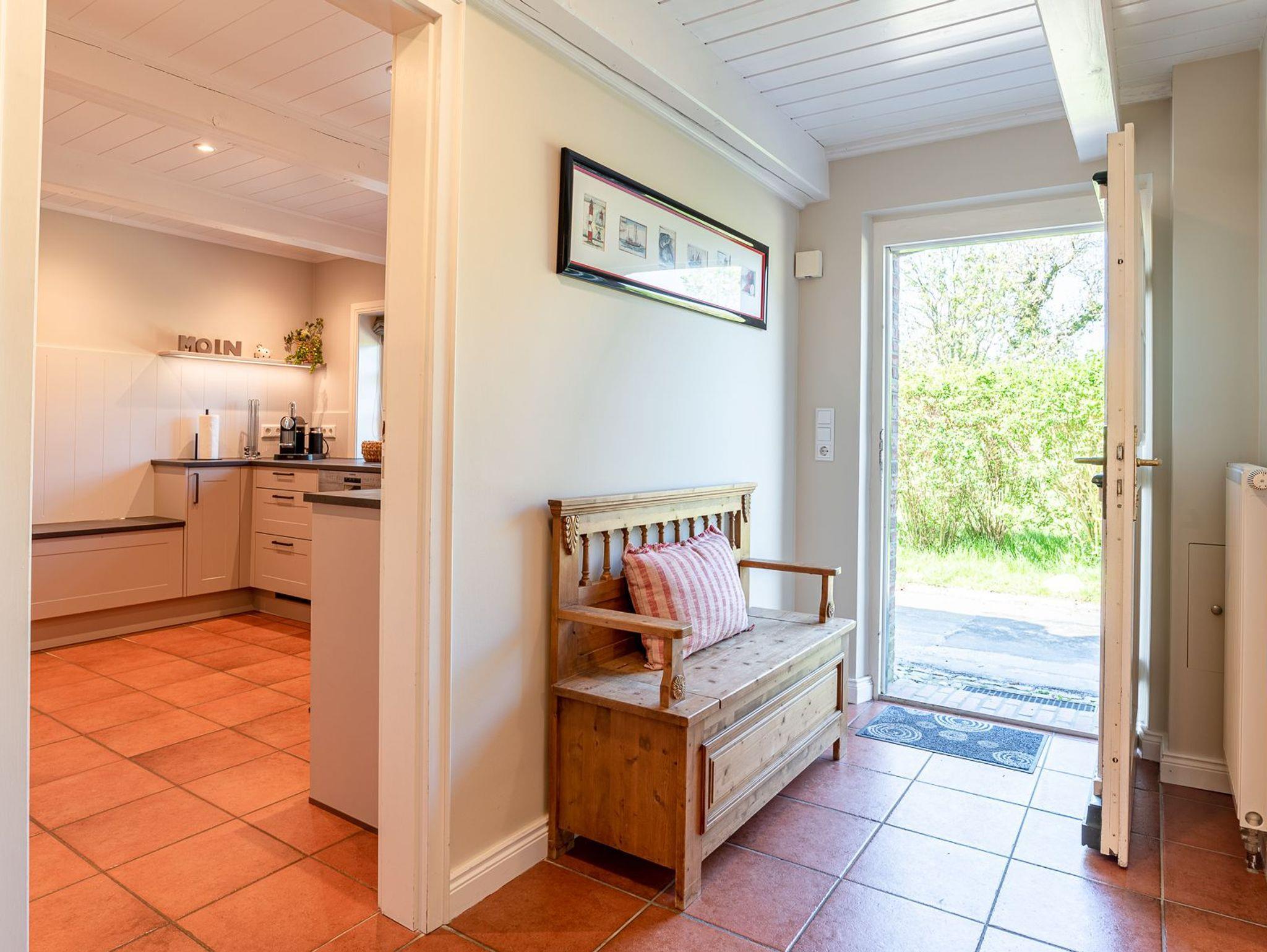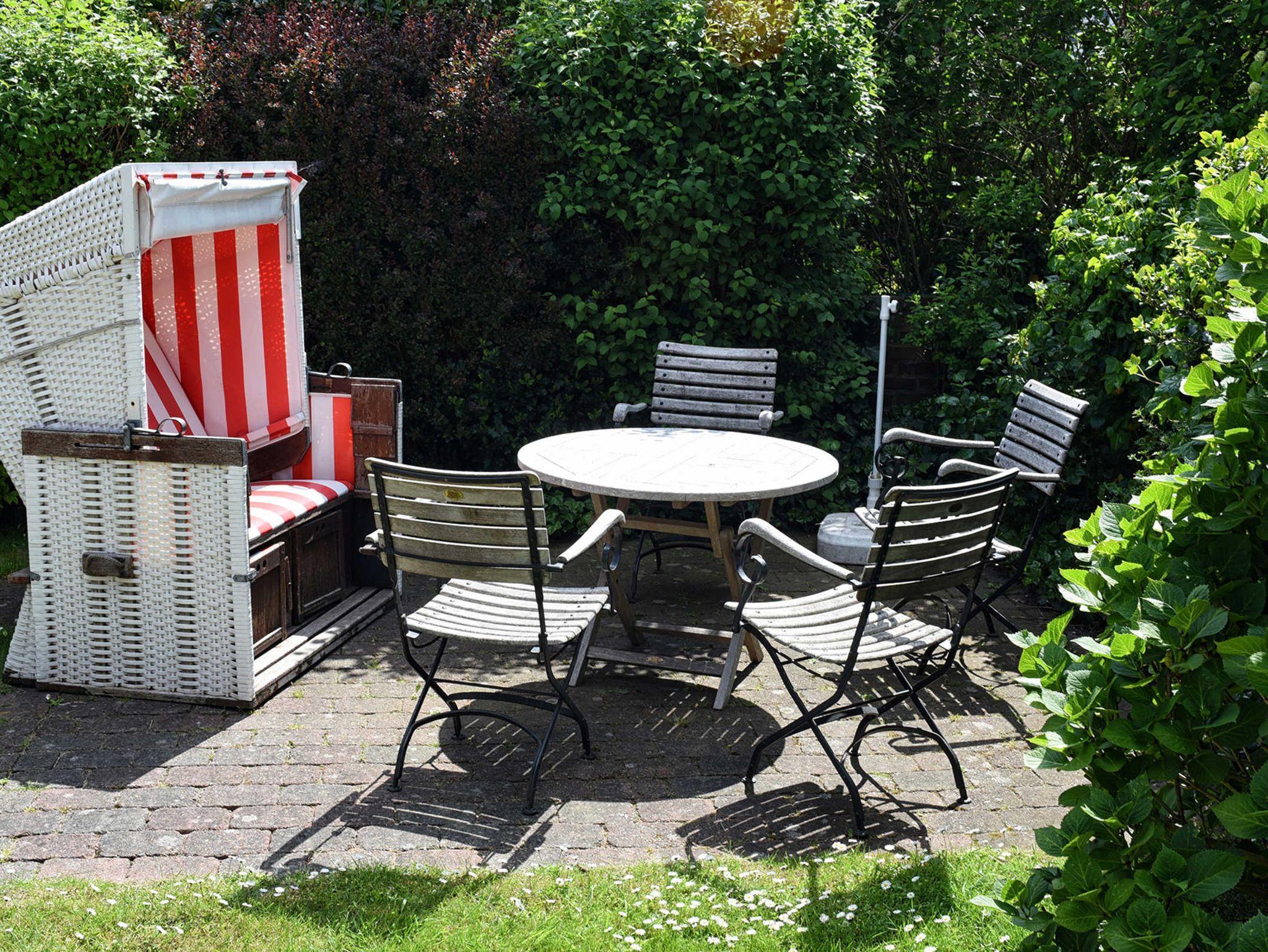 Gemütliches Ferienhaus in Oldsum mit Garten, Kachelofen und moderner Ausstattung für erholsame Urlaubstage.
