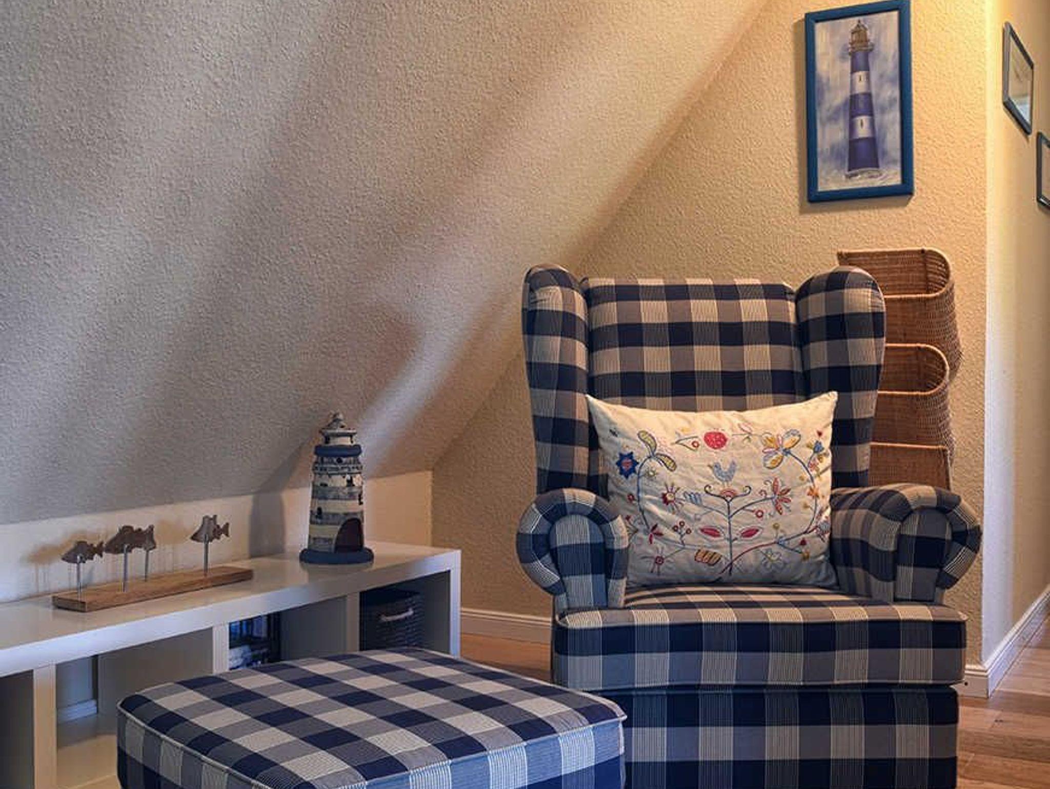 Dachgeschoss: Diele mit gemütlicher Leseecke, zwei Schlafzimmer jeweils mit Doppelbett
