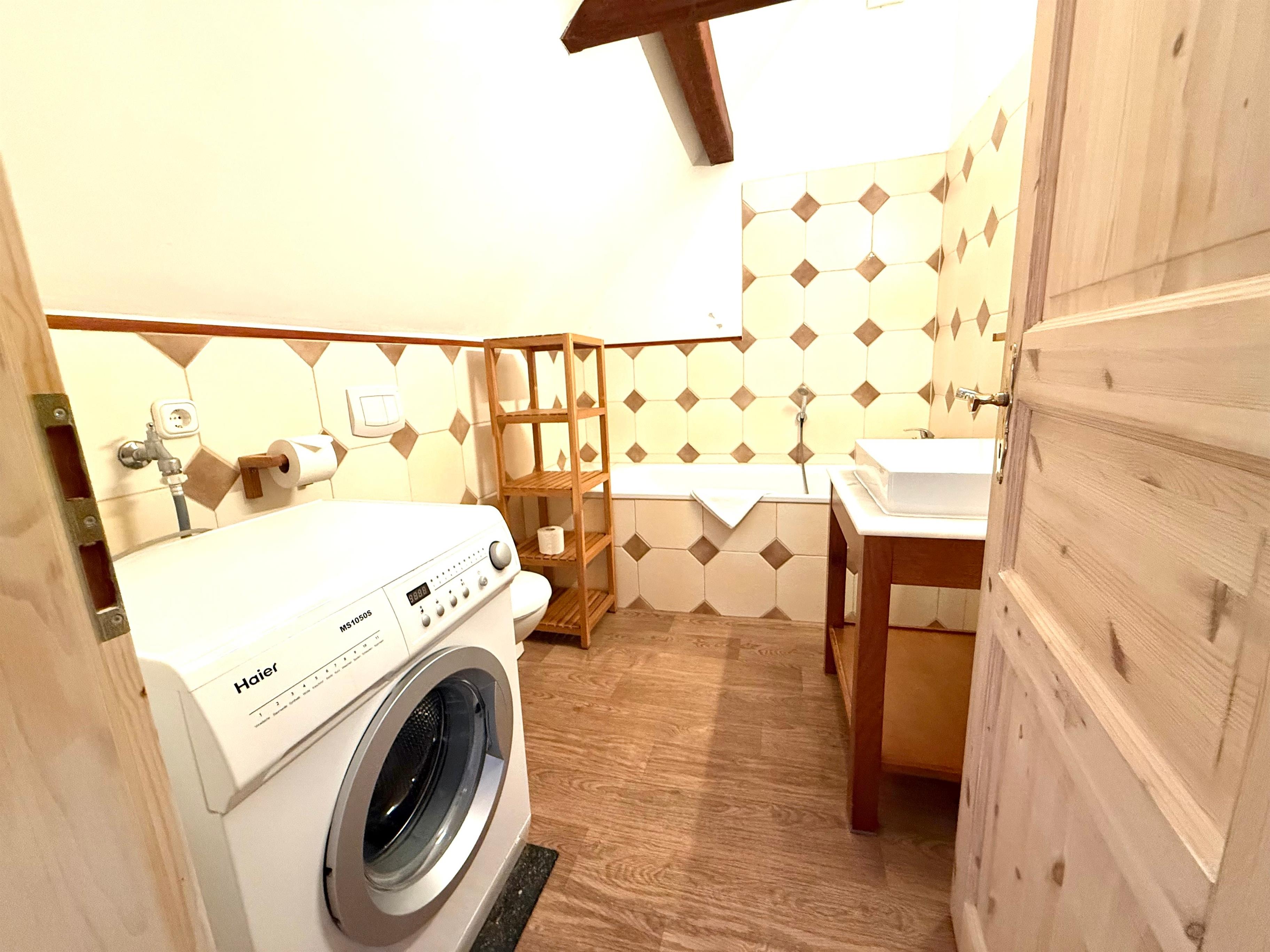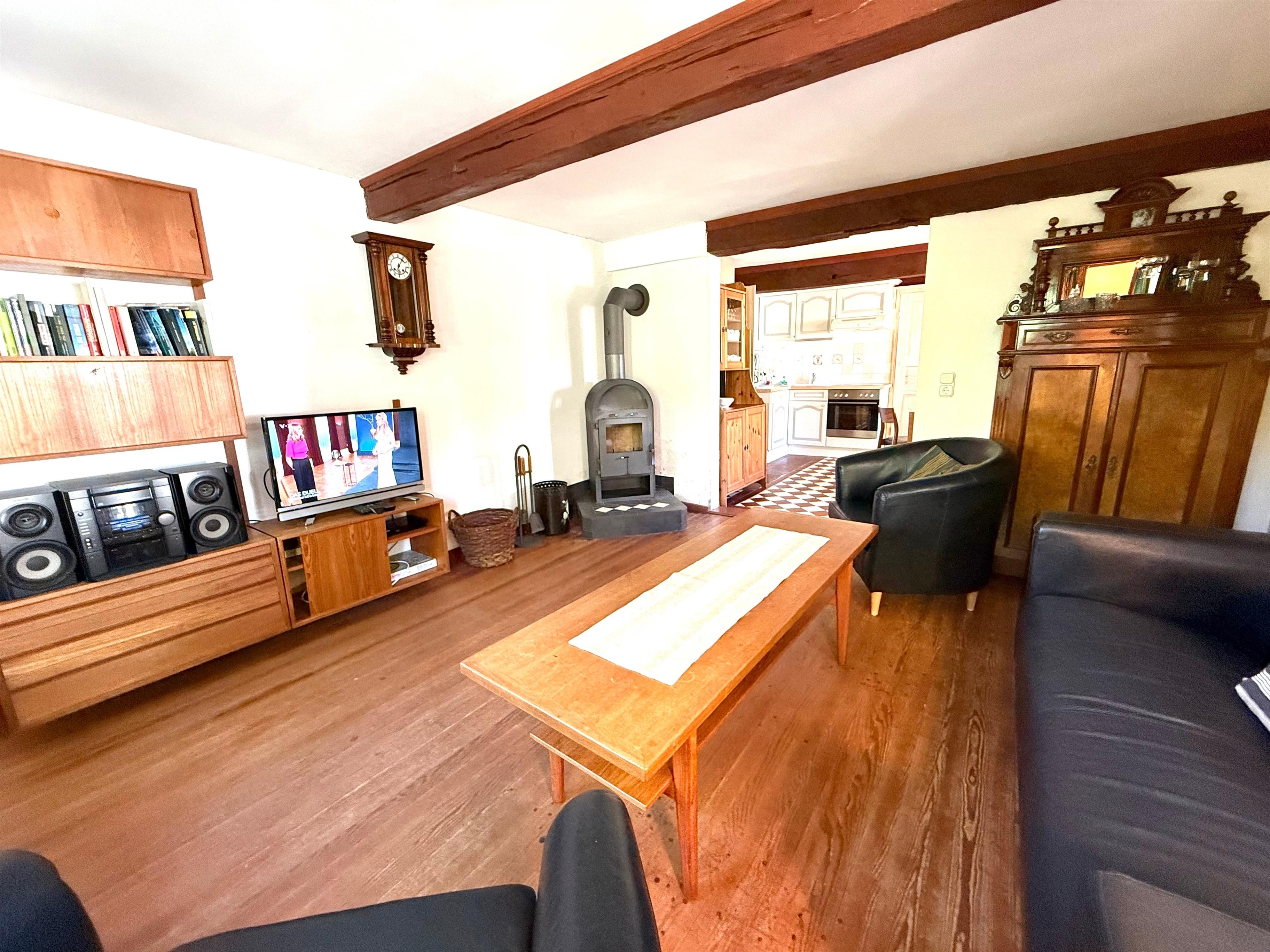 Im rückwärtigen Bereich des etwa 1000 m² großen Grundstücks, hinter dem Bauerngarten befindet sich eine große Wiese mit Sandkiste zum Spielen und Grillen. Am Gartenausgang auf der Südwestseite des Hauses finden Sie großzügige Terrassen mit Gartenmöbeln. Über die alte Hofzufahrt können Sie einen Stellplatz nutzen.