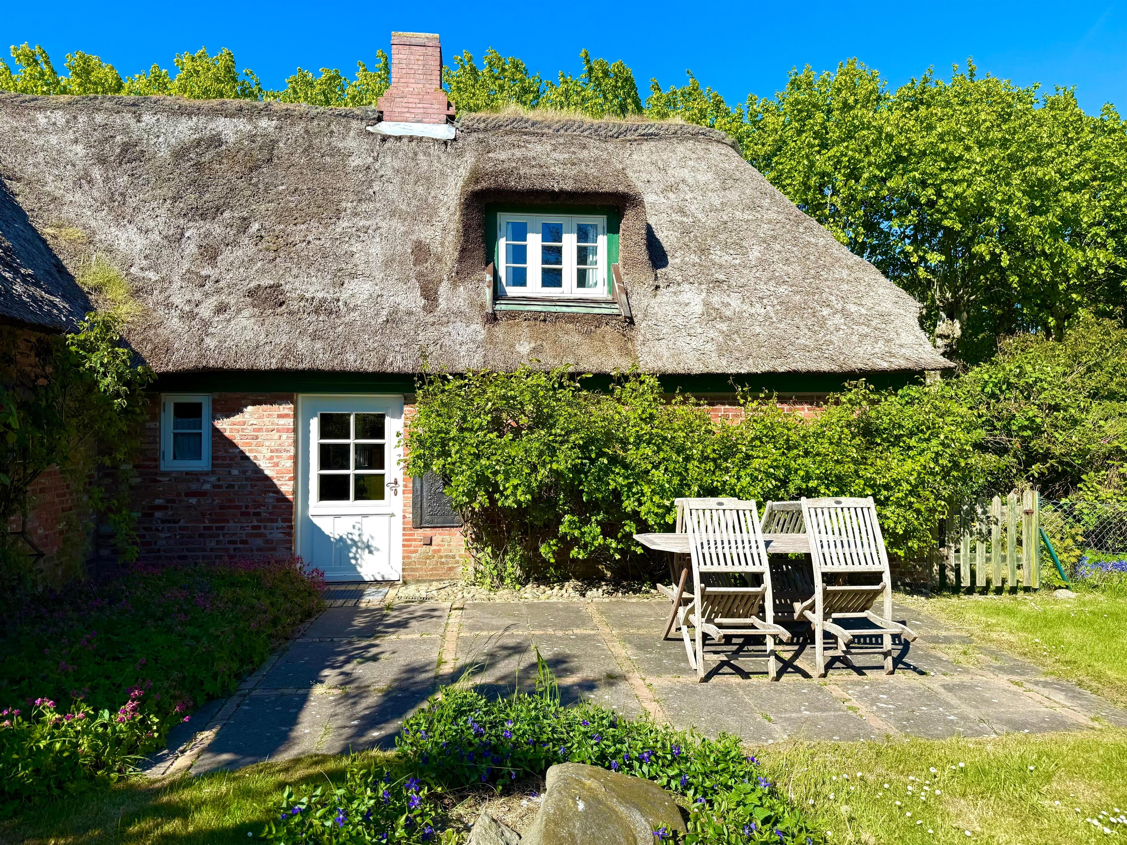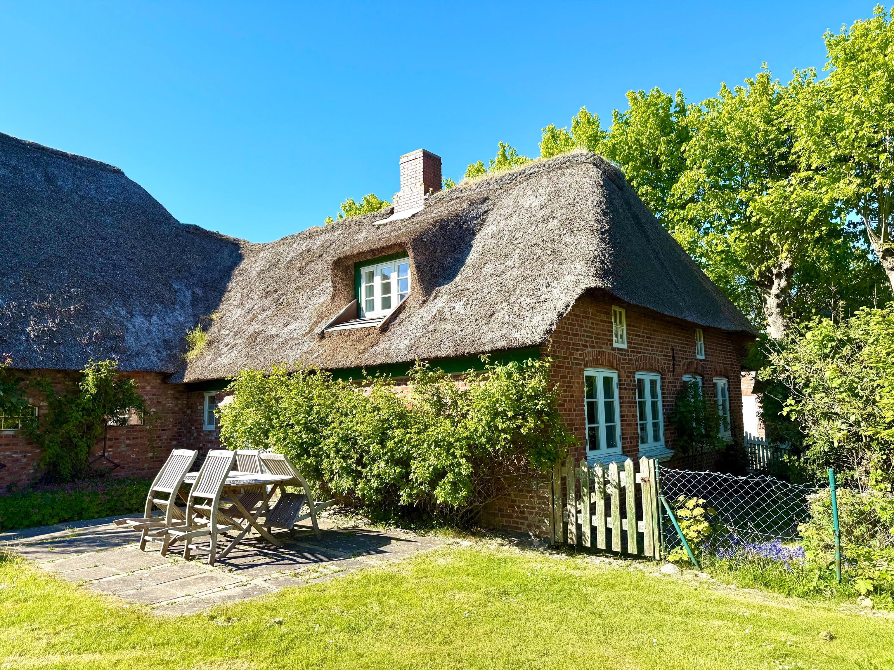 Stilvolles Reetdach-Ferienhaus in idyllischem Oldsum mit Sauna, Kamin und großem Garten.
