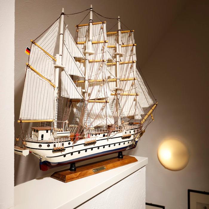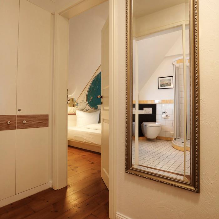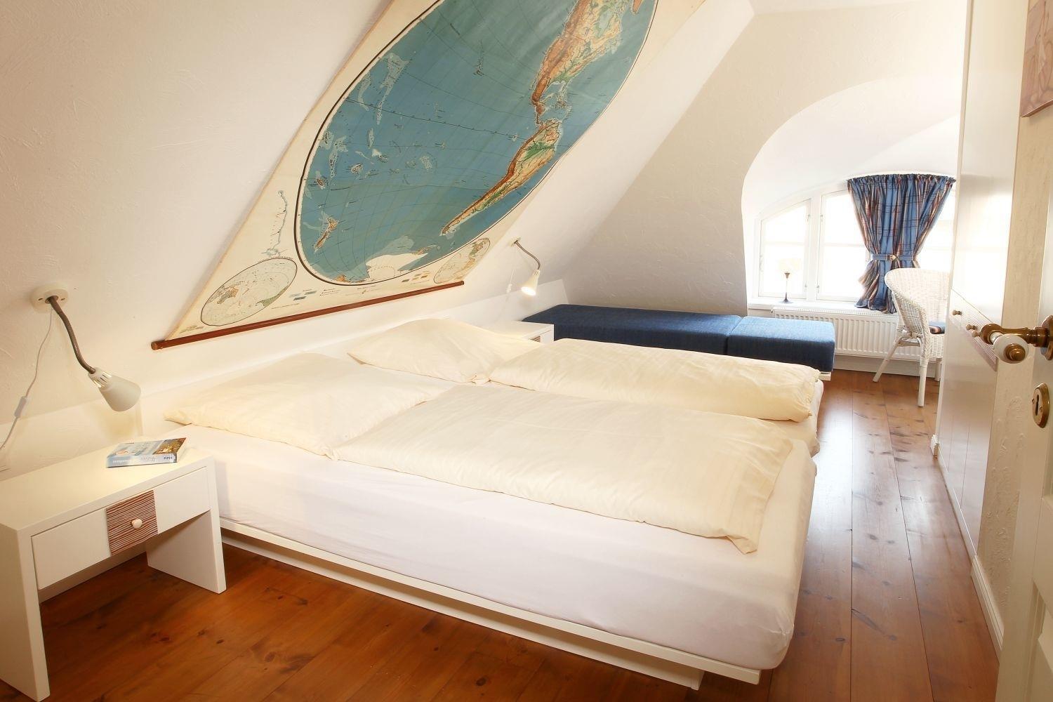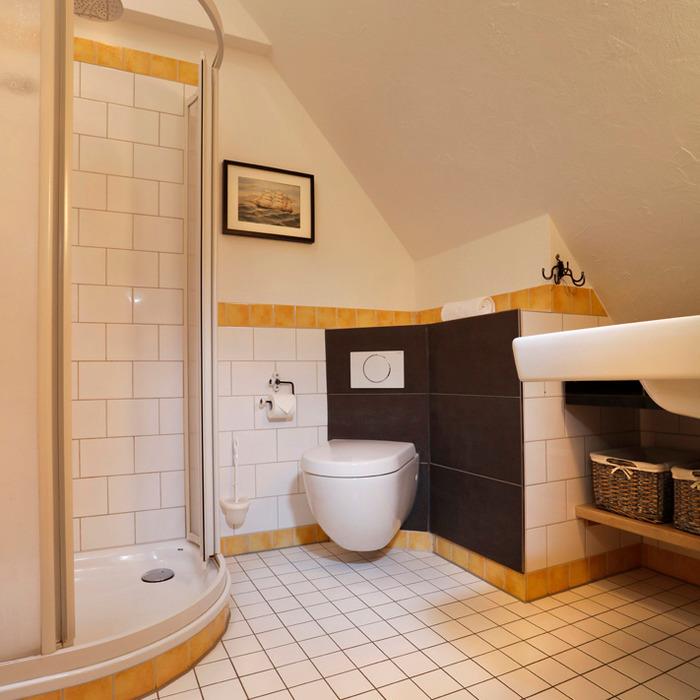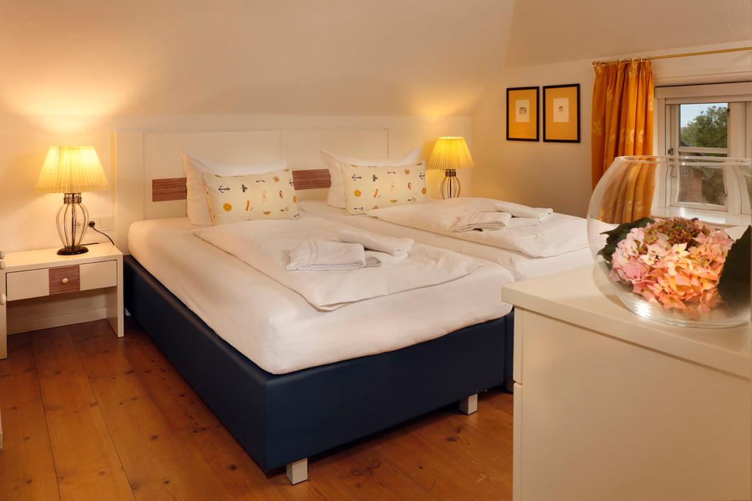 Der besondere Reiz unseres Wattwanderers liegt im Wohnen auf unterschiedlichen Ebenen. Ein zum Sitz- und Essbereich schwenkbarer Kamin verbreitet wohlige Wärme. Nach ausgiebigen Spaziergängen können Sie sich in der Infrarotsauna wärmen lassen. Auch die offene Küche lädt zum gemeinsamen Kochen und Klönen am gemütlichen Tresen ein. Die Schlafzimmer sind großzügig, komfortabel und gemütlich eingerichtet. Ein Babybett steht in einer kleinen abtrennbaren Nische zur Verfügung, wenn es benötigt wird. Es befinden sich sowohl im OG als auch im EG (mit Fußbodenheizung und Infrarotsauna) ein Badezimmer.