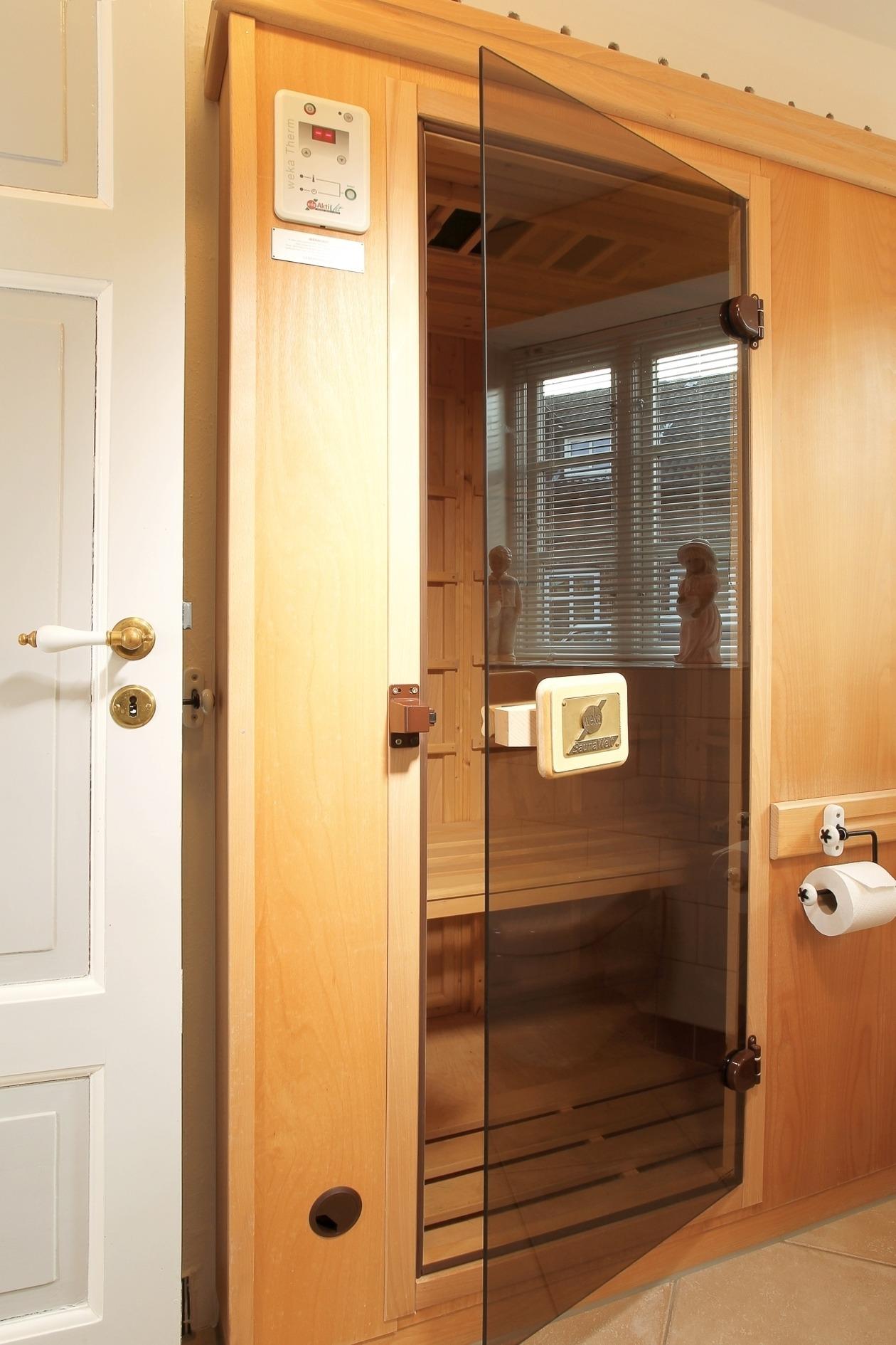 Großzügiger Wohnraum mit Essbereich, Küche mit Bar; 2 Schlafräume, davon 1 Schlafraum mit Doppelbett und Zusatzbett, 1 Schlafraum mit Doppelbett (Babybett vorhanden); 2 Bäder mit Dusche/WC - 1 Bad mit Fußbodenheizung und Infrarotsauna.