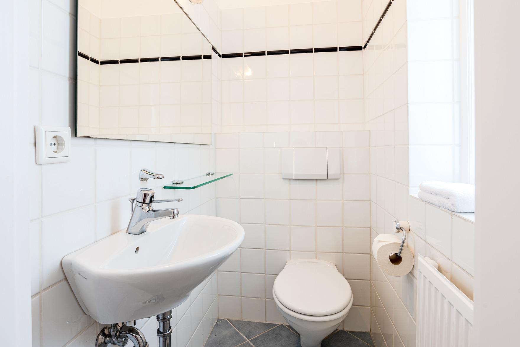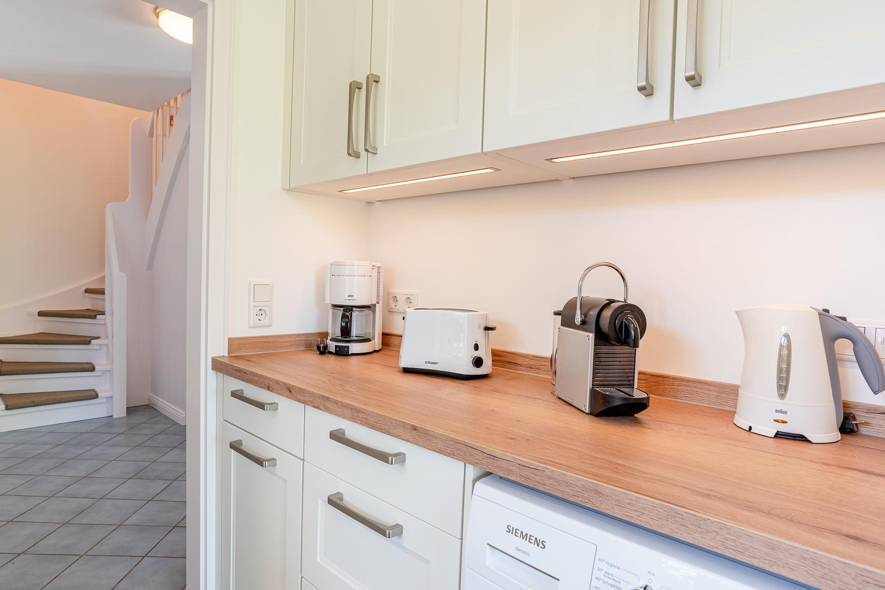 Die Waschmaschine ist zur freien Verfügung, auch Bügeleisen und -brett fehlen nicht.