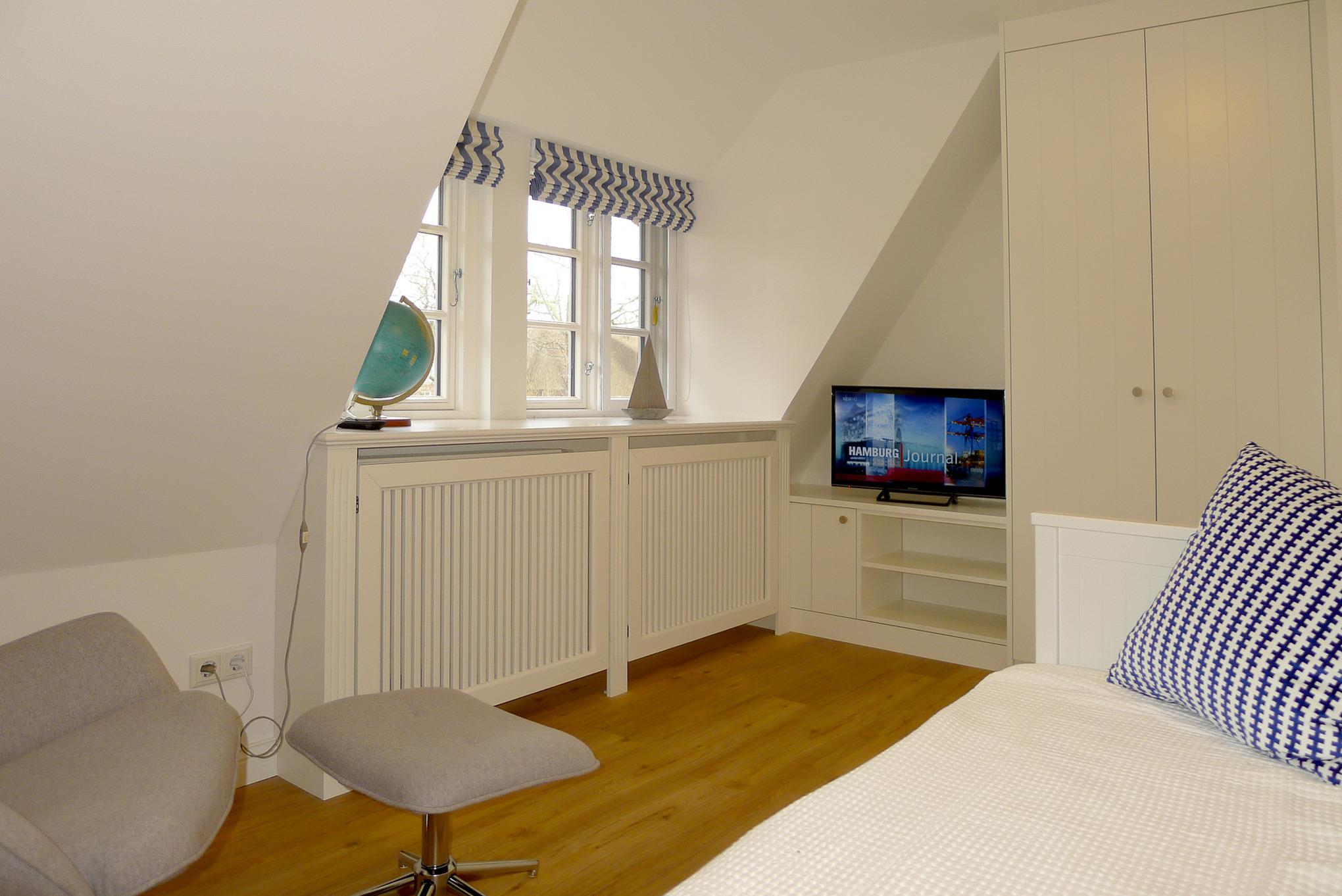 Das Dorf Oldsum, genannt das Künstlerdorf, befindet sich im westlichen Teil Föhrs. Das Haus steht in einer ruhigen Straße am Rande der Marsch, mit kurzen Wegen zum Edeka Markt mit Bäckerei, zu zwei gemütlichen Cafés und zum Dorfgasthof. Das Reetdachhaus liegt direkt am ausgeschilderten Radwanderweg. Die Haushälfte ist großzügig und hell eingerichtet. Zwei Sonnenterrassen mit südlicher und westlicher Ausrichtung laden zum Sonnenbaden und Grillen ein. Sollten Sie mit einem Elektroauto anreisen, so befindet sich nahe gelegen eine öffentliche Ladesäule.