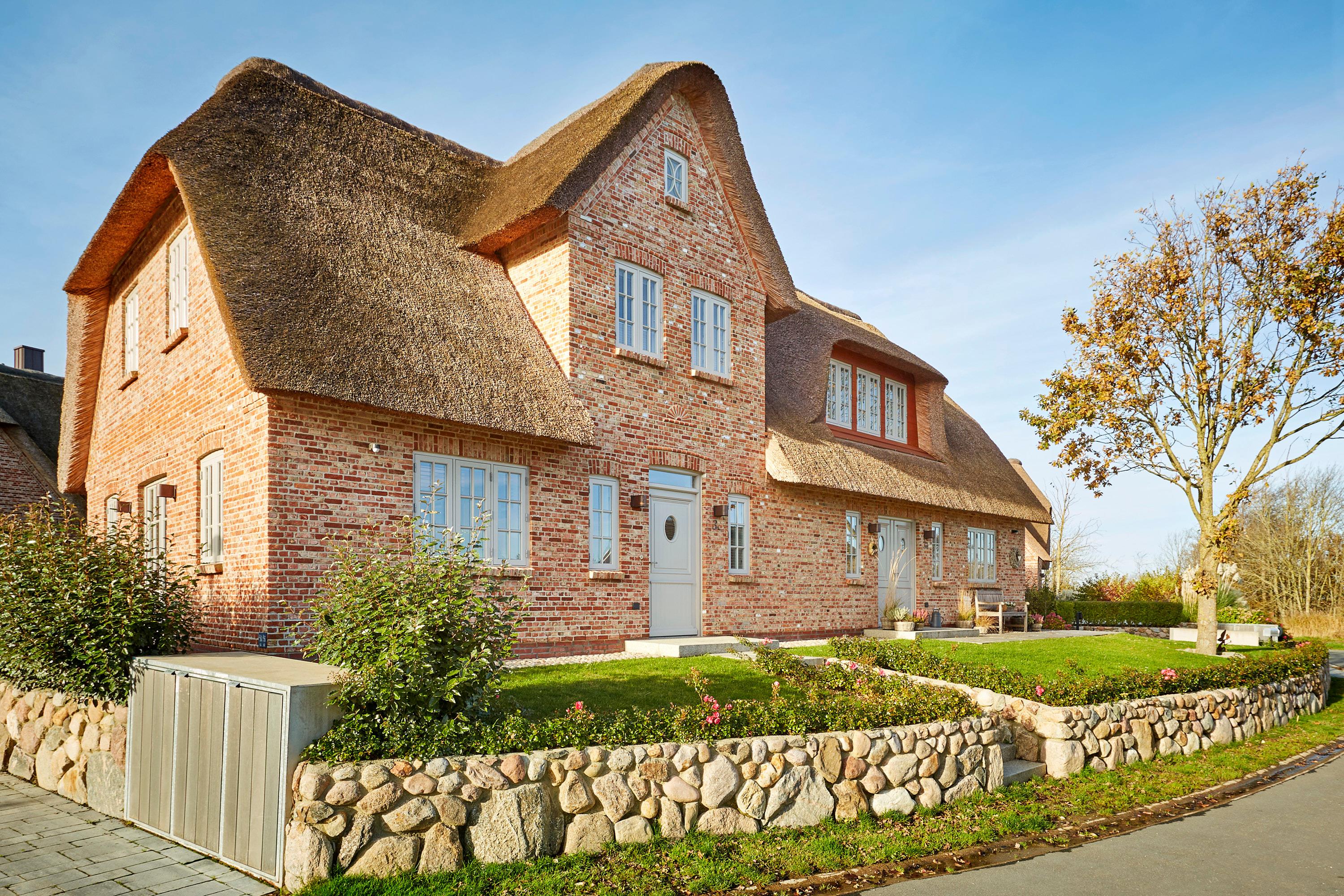 Dieses Reetdach-Doppelhaus liegt am Ortsrand des beschaulichen Friesendorfs Oldsum, auch als Künstlerdorf bezeichnet. Das Haus steht in einer ruhigen Straße am Rande der Marsch, mit kurzen Wegen zum Edeka Markt mit Bäckerei, zu zwei gemütlichen Cafés und zum Dorfgasthof.