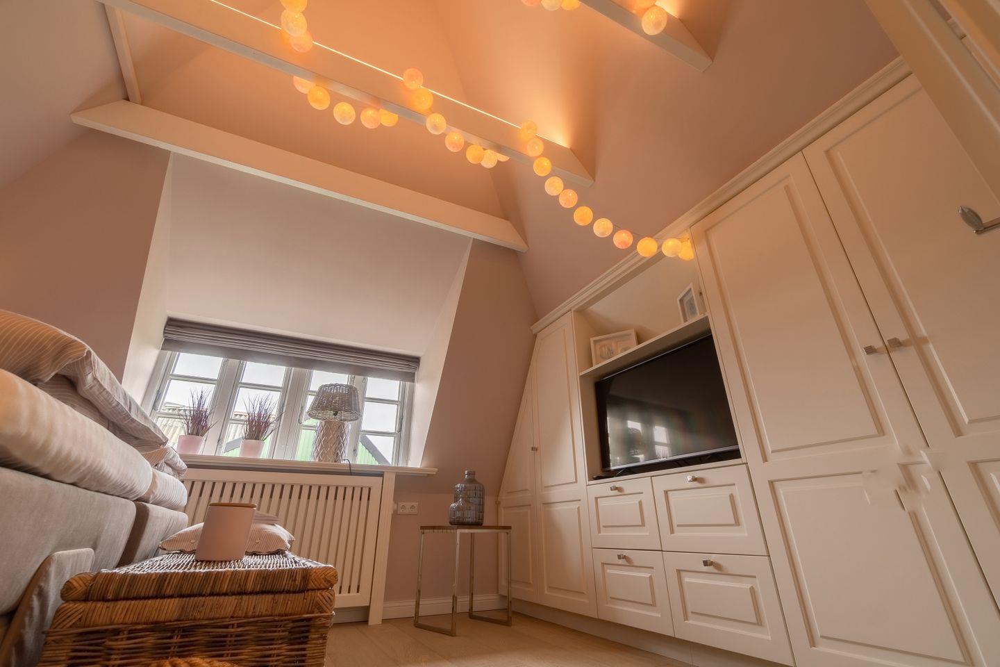 In allen Schlafräumen sowie im Wohnbereich befinden sich Smart-TVs mit Aufnahmefunktion zum zeitversetzten Fernsehen. In allen Bädern sowie im Wohnbereich stehen Sonoro Musikanlagen mit CD-Player, UKW-, DAB- und Internetradio bereit. Bei allen Betten im Haus handelt es sich um sehr wertige Boxspringbetten, welche über elektrische Motorrahmen verfügen. Die Bettwäsche und Handtücher stammen allesamt von Lexington.