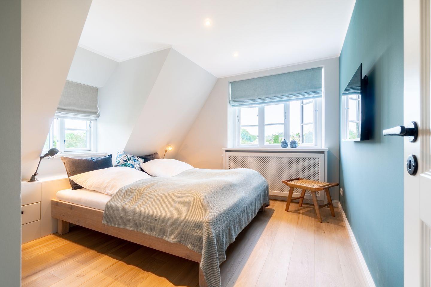 Die reetgedeckte Doppelhaushälfte Herzanker Hüs wurde im Jahr 2021 fertiggestellt und verfügt über 3 Schlafzimmer (eines mit begehbarem Kleiderschrank) und 2 Bäder und bietet somit komfortabel Platz für bis zu 6 Personen (ein Schlafzimmer mit ausziehbarem Bett) zuzüglich einer Kleinkinderaufbettung.