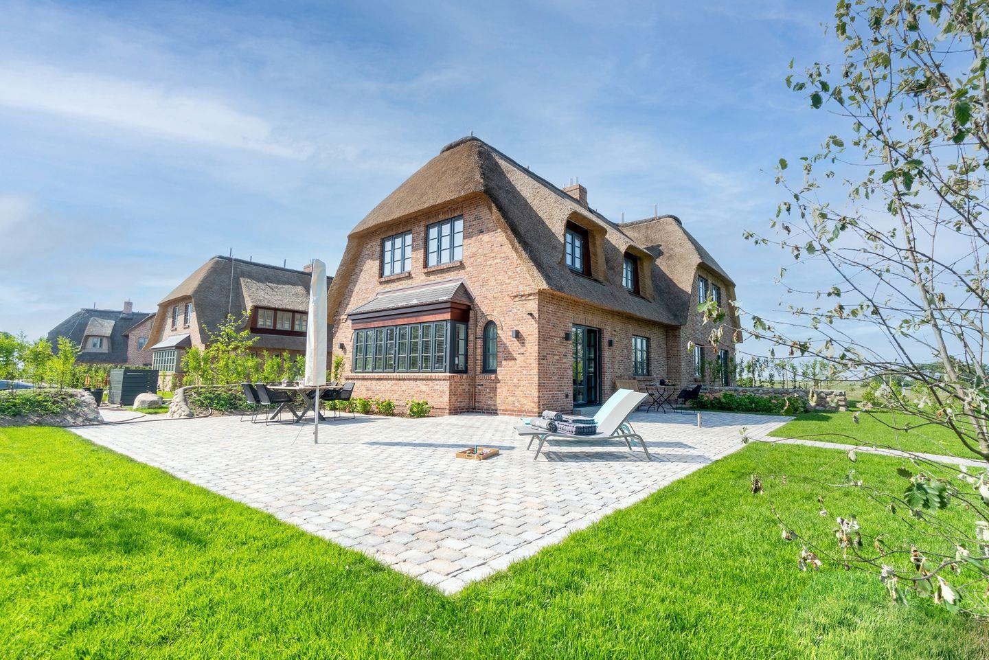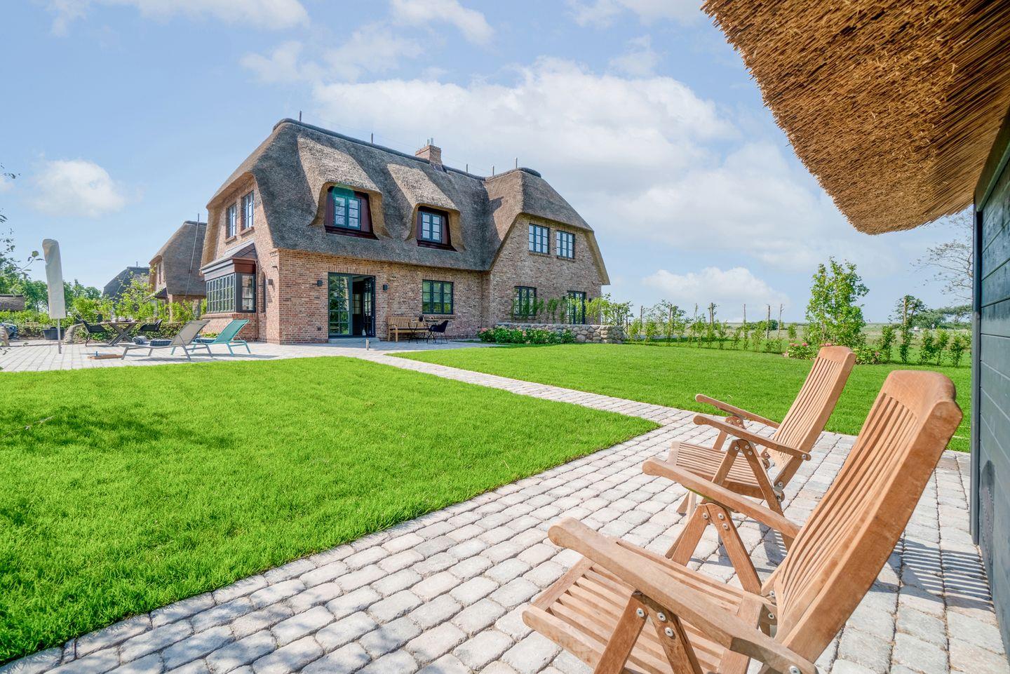 Luxuriöse Doppelhaushälfte mit Sauna, Kachelofen und drei Terrassen in idyllischem Oldsum an der Nordsee.