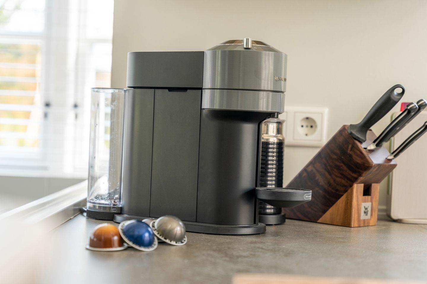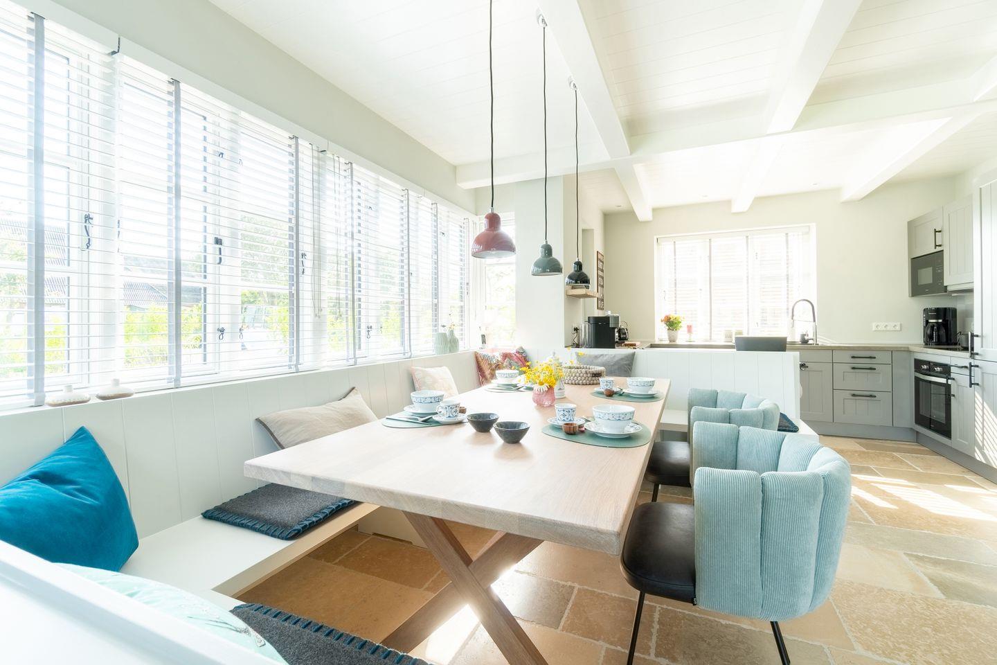 Mit der ganzen Familie genießen Sie die große lichtdurchflutete „Utlucht“-Bank am Eichentisch mit Designerstühlen. Die vielfältig ausgestattete Küche mit handgefertigten Delfter Fliesen lädt mit ihrer Keramikarbeitsplatte zum Kochen und Backen ein. Für Kaffeetrinker steht neben einer Kaffeefiltermaschine auch eine Nespresso Maschine und Milchaufschäumer der neuesten Generation bereit. An dieser Stelle ein wichtiger Hinweis: Die neuen Vertuo Nespresso-Kapseln der Kaffeemaschine können Sie nicht auf der Insel Föhr erwerben!