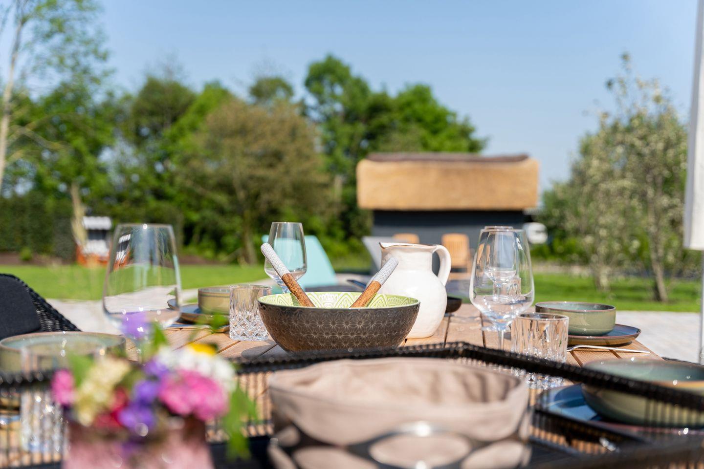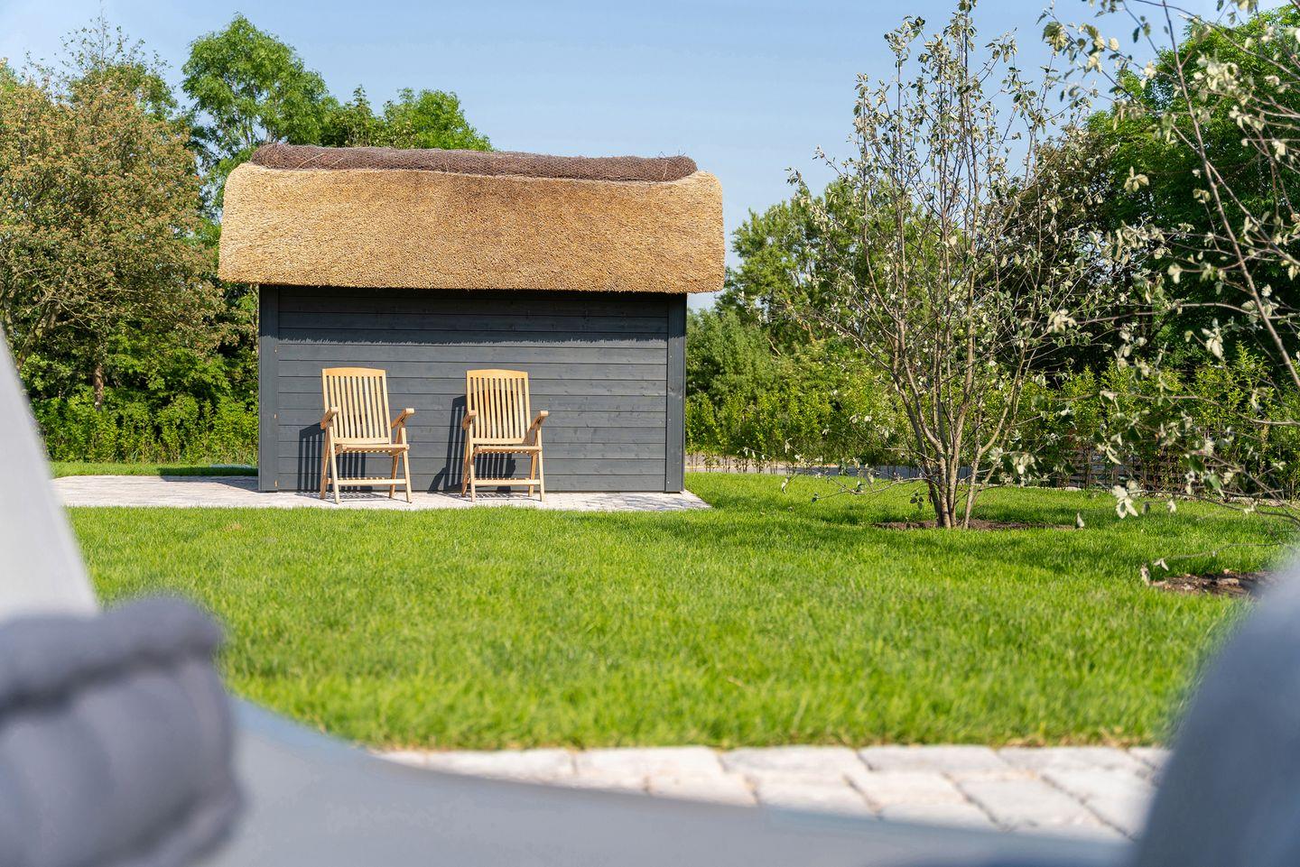 Hochwertig ausgestattete Doppelhaushälfte unter Reet mit Sauna, Kachelofen und Garten mit drei Terrassen.