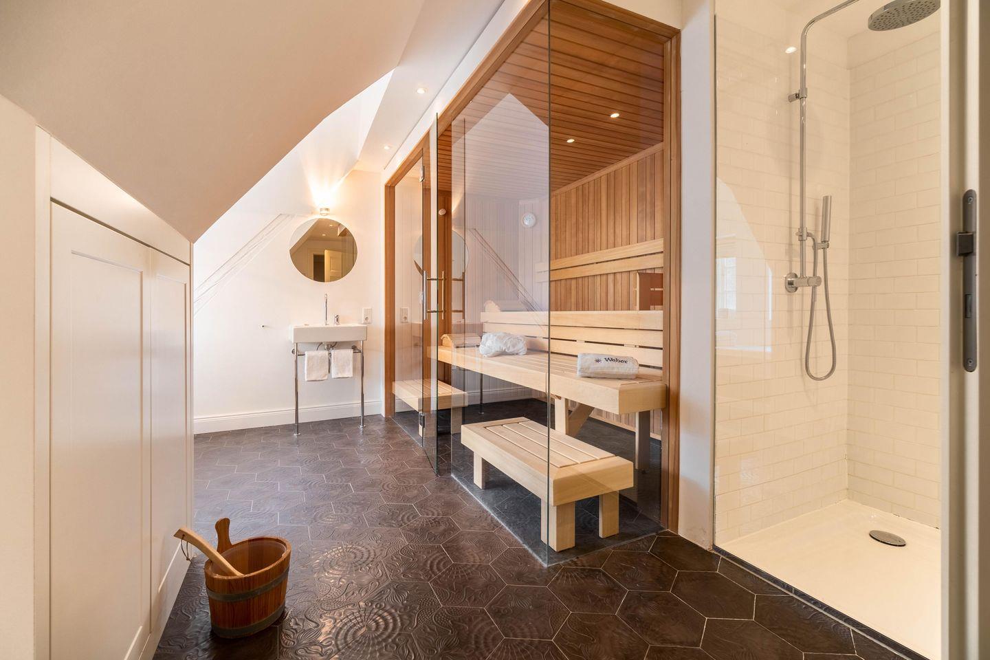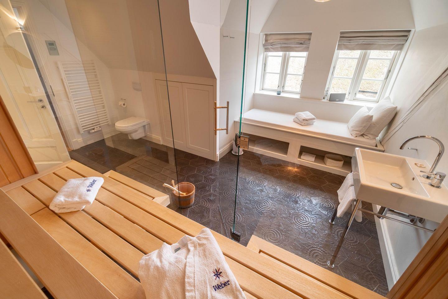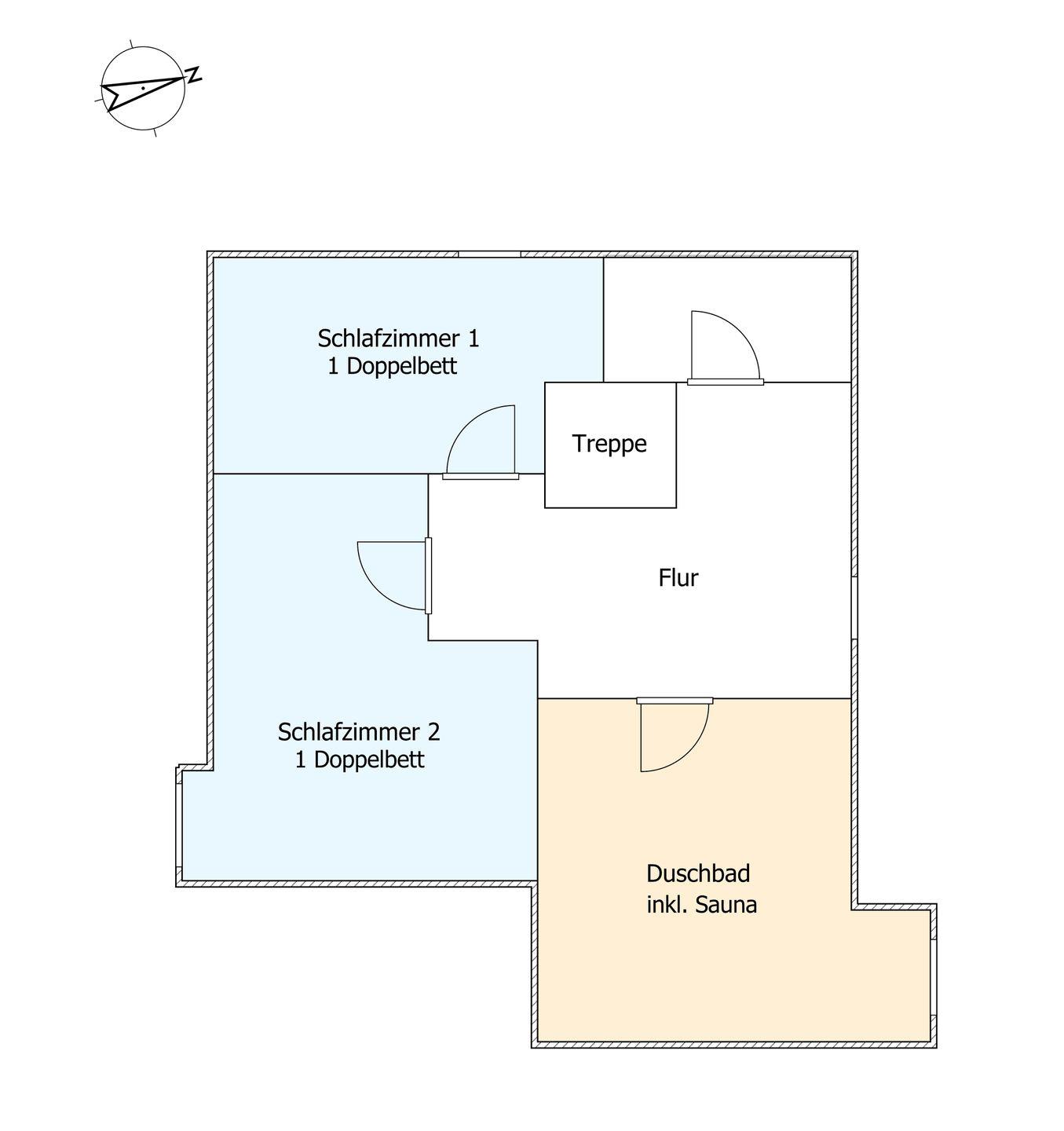 Im Obergeschoss befinden sich die beiden Schlafzimmer, sowie das zweite Duschbad und die hauseigene Sauna.