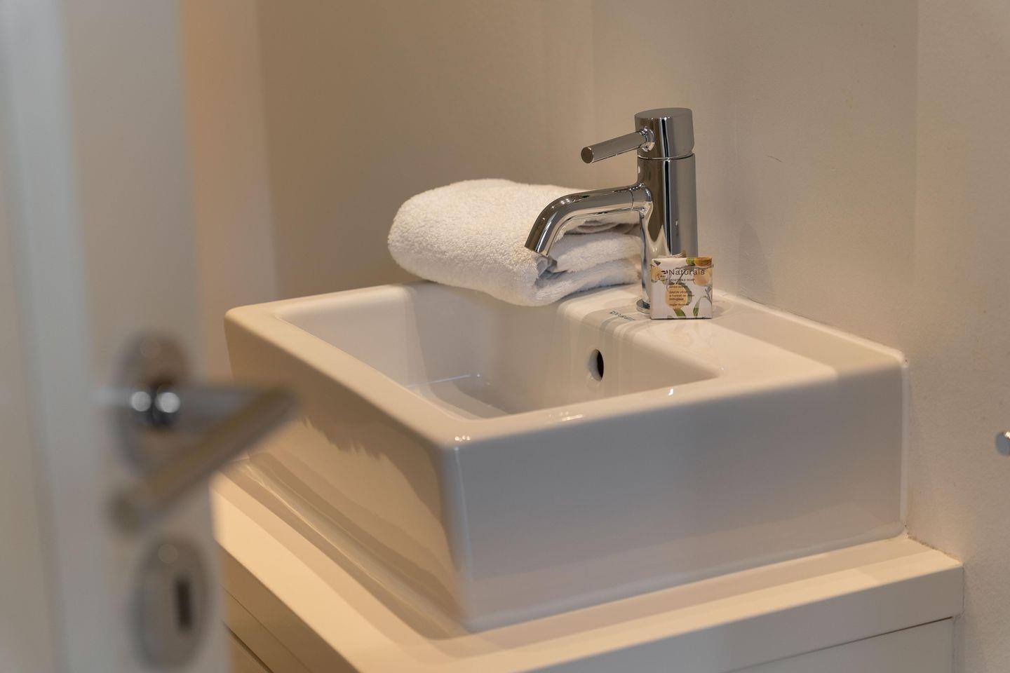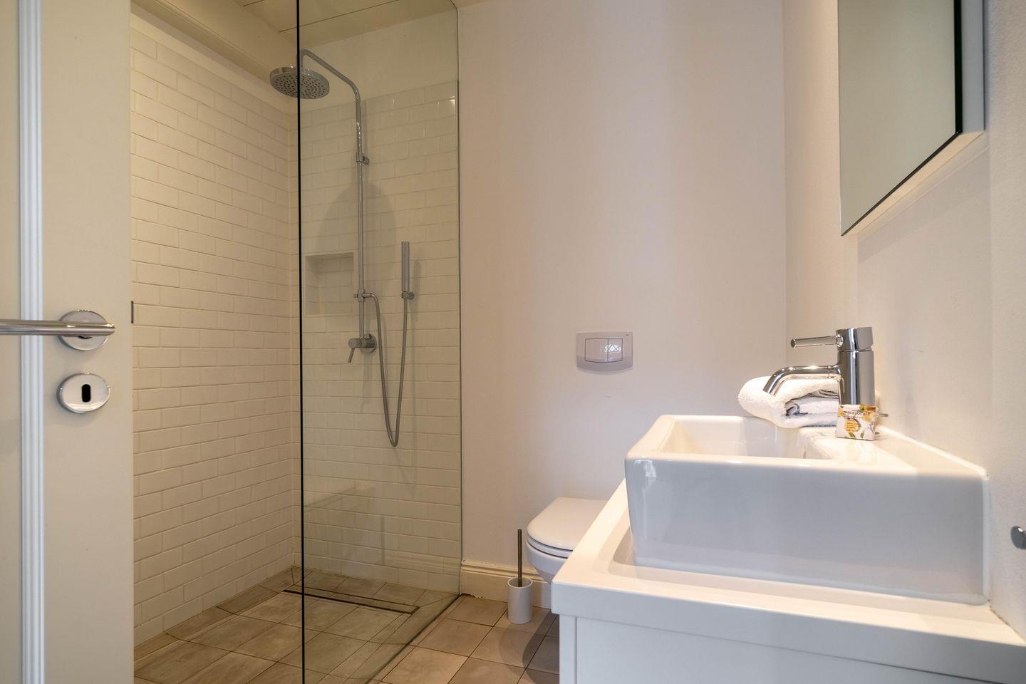 Im Nebengebäude, welches für beide Wohnungen zugänglich ist, befinden sich Waschmaschine, Trockner und Wäscheständer. Hier können auch Fahrräder untergestellt und E-Bike Akkus geladen werden. Auch an die lieben Vierbeiner ist in Form einer Hundedusche gedacht worden.