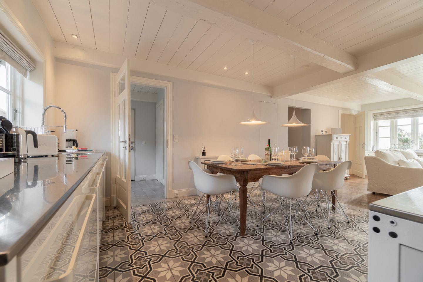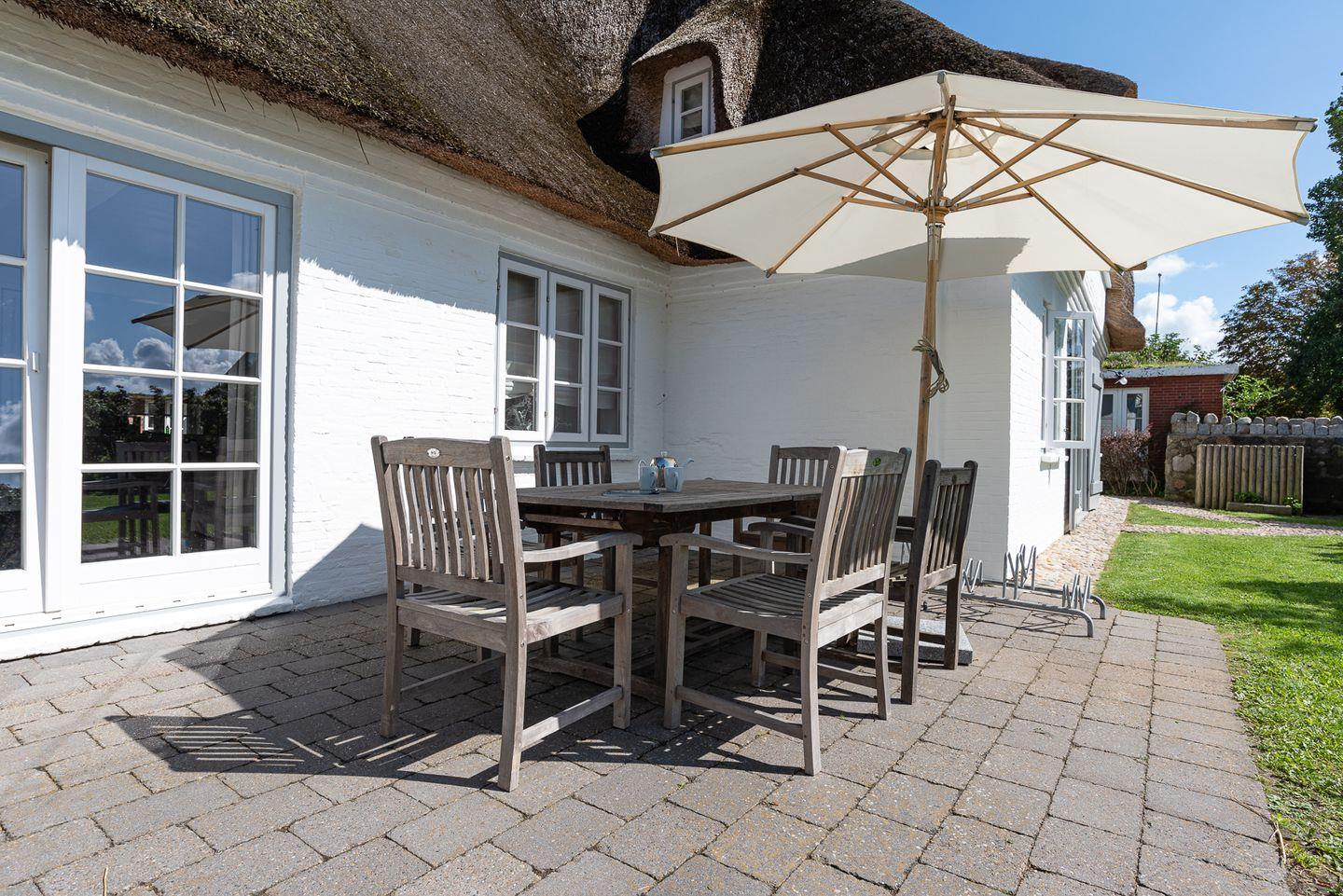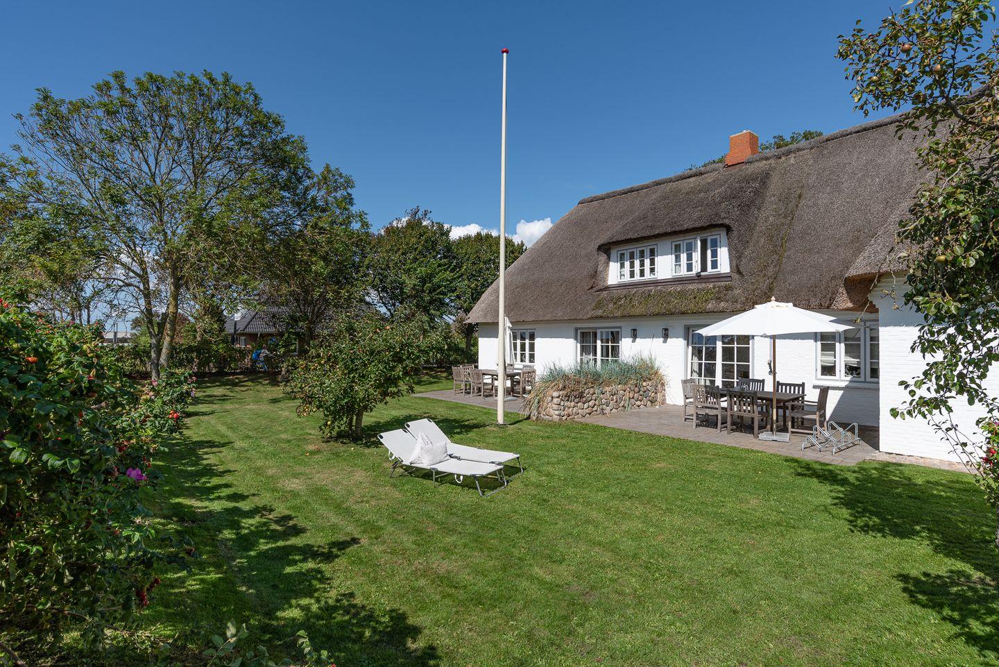 Die reetgedeckte Doppelhaushälfte Kapitänshaus Ost verfügt über 3 Schlafzimmer und 2 Bäder und bietet somit komfortabel Platz für bis zu 6 Personen zuzüglich einer Kleinkinderaufbettung. Auch bis zu 2 Hunde sind herzlich willkommen.