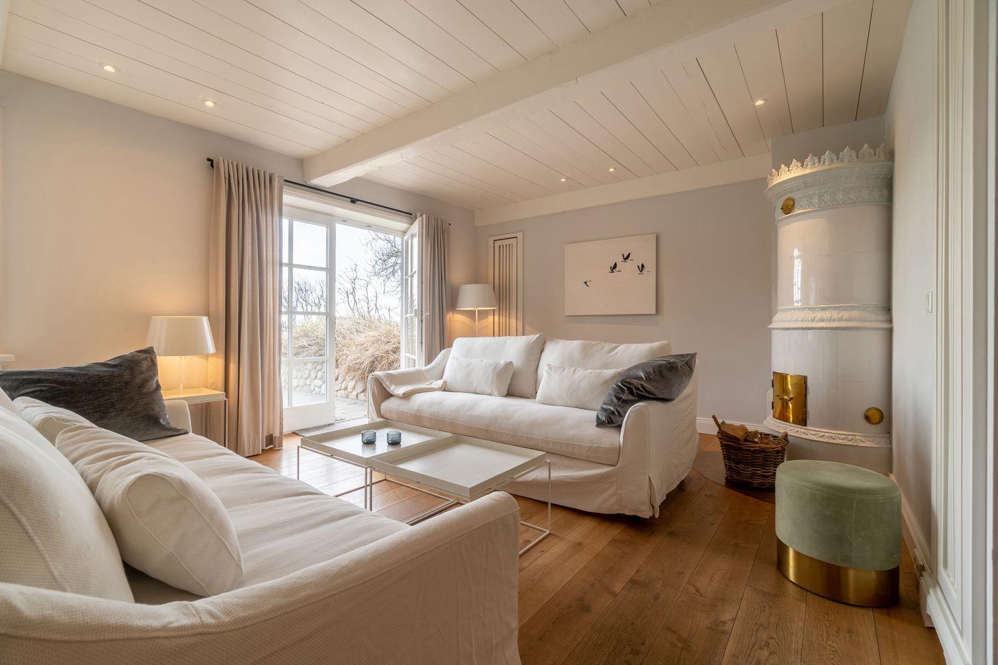 Luxuriöse reetgedeckte Doppelhaushälfte mit Sauna und Kachelofen auf Föhr.