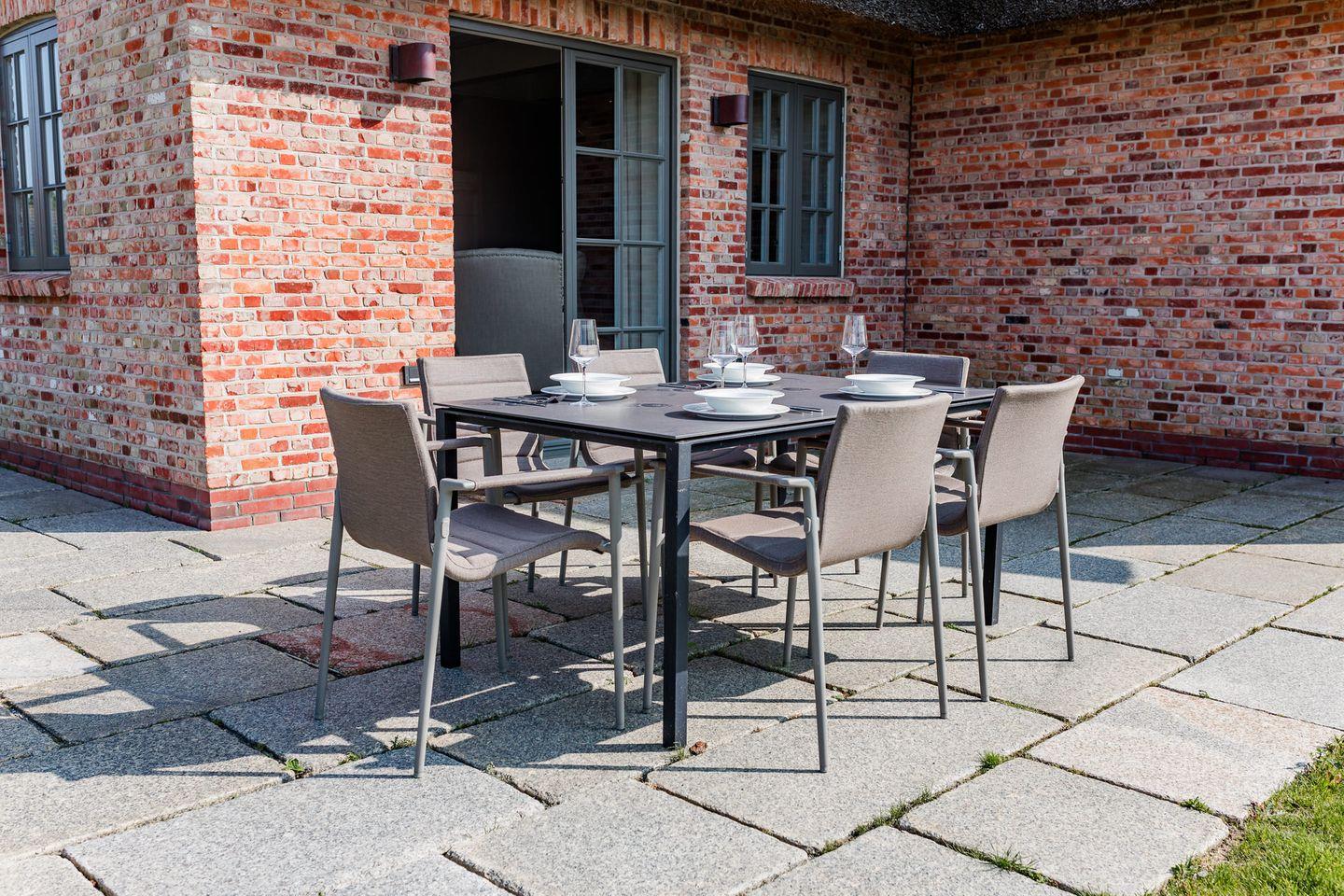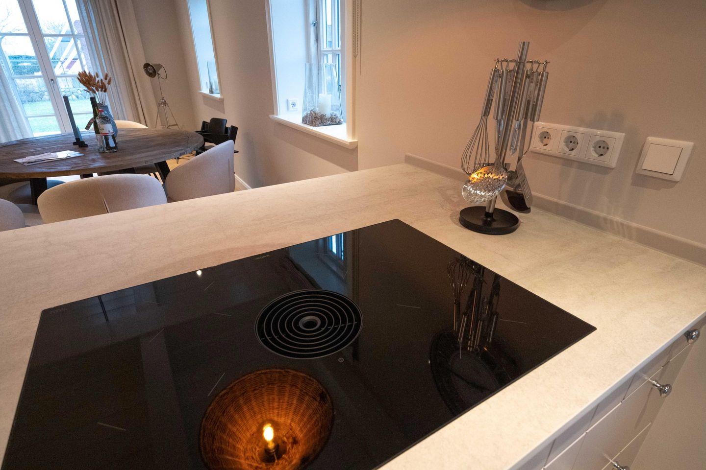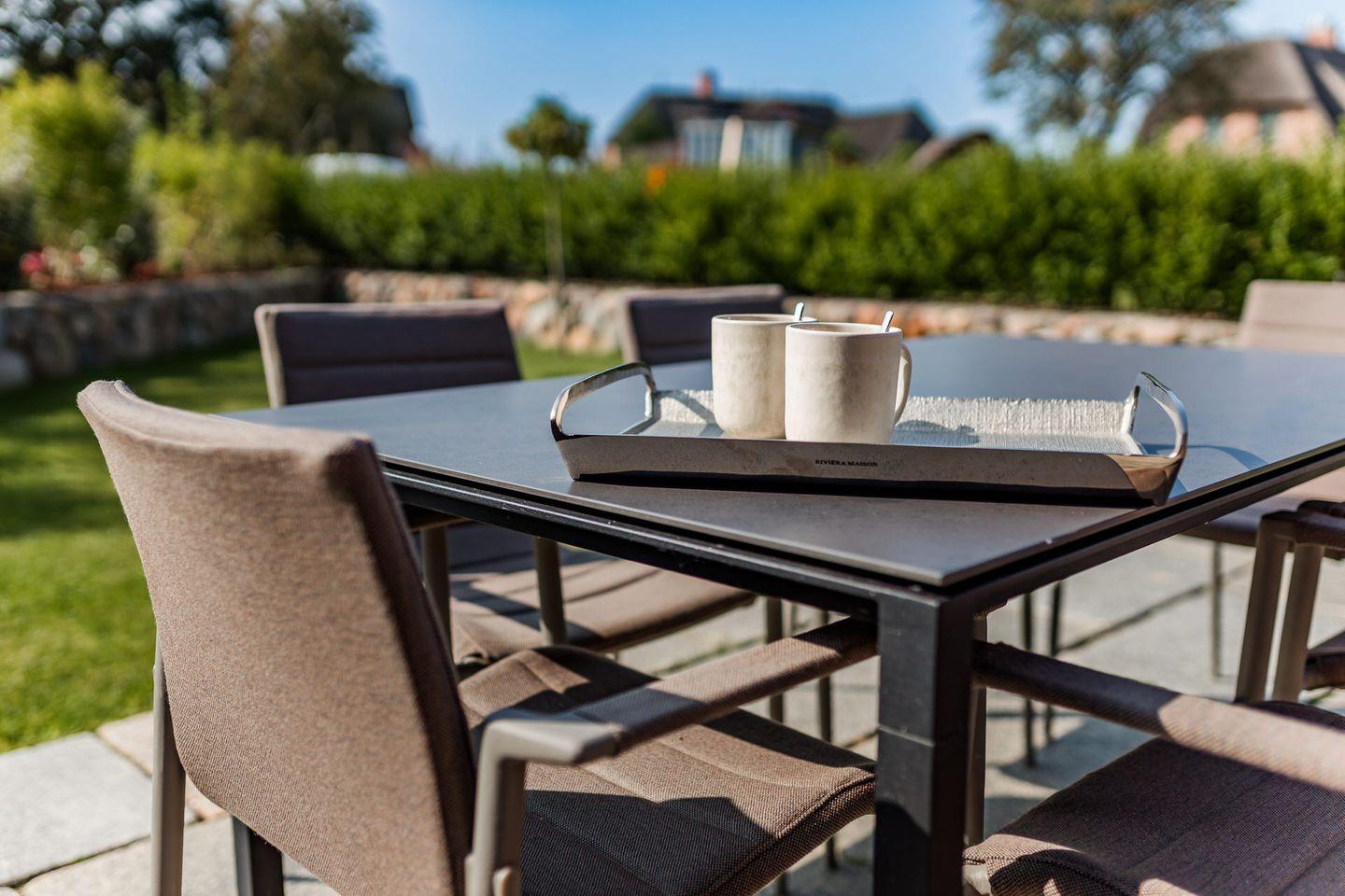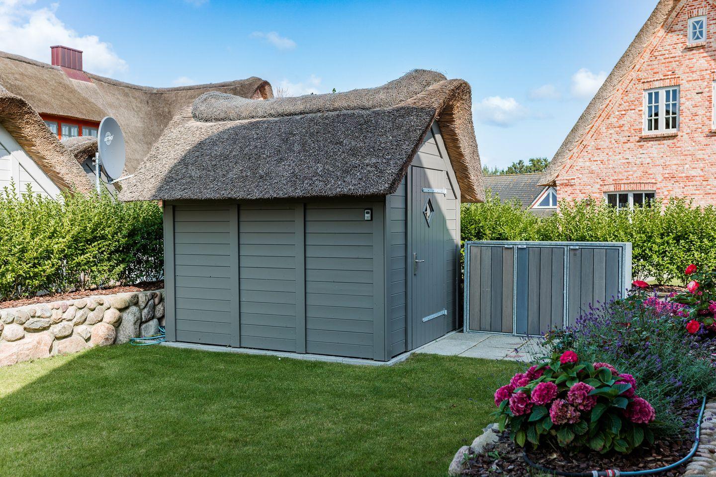 Moderne, reetgedeckte Doppelhaushälfte mit Garten, Mylin-Kachelofen und Terrasse in Oldsum.