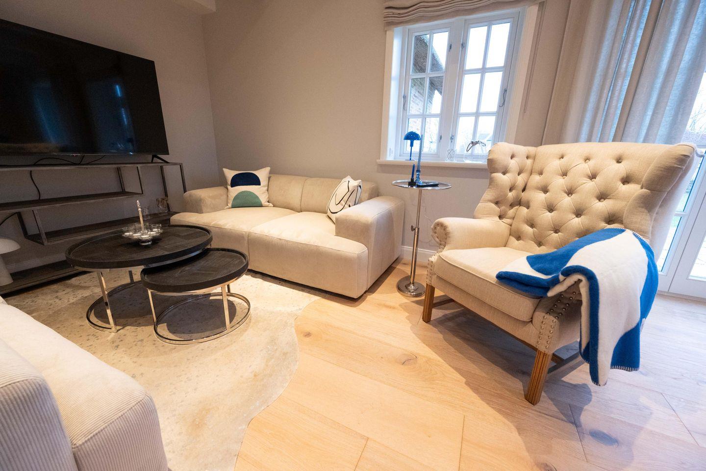 Die reetgedeckte Doppelhaushälfte Letj Ferhaaling - zu deutsch: Kleine Erholung - wurde im Jahr 2023 neu gebaut und verfügt über 3 Schlafzimmer, 2 Bäder und 1 Gäste-WC und bietet somit komfortabel Platz für bis zu 6 Personen zuzüglich einer Kleinkinderaufbettung. Auch ein Hund ist hier herzlich willkommen.