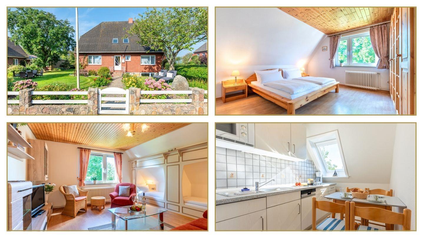 Willkommen in Broders Haus "alkoven", Ihrer gemütlichen Ferienwohnung im malerischen Oldsum auf Föhr. Diese charmante Unterkunft bietet Ihnen auf 40 m² ausreichend Platz für bis zu vier Personen und ist der perfekte Rückzugsort für Familien oder Paare, die eine entspannte Auszeit in ländlicher Umgebung suchen. Im Haus befinden sich zwei weitere Ferienwohnungen.