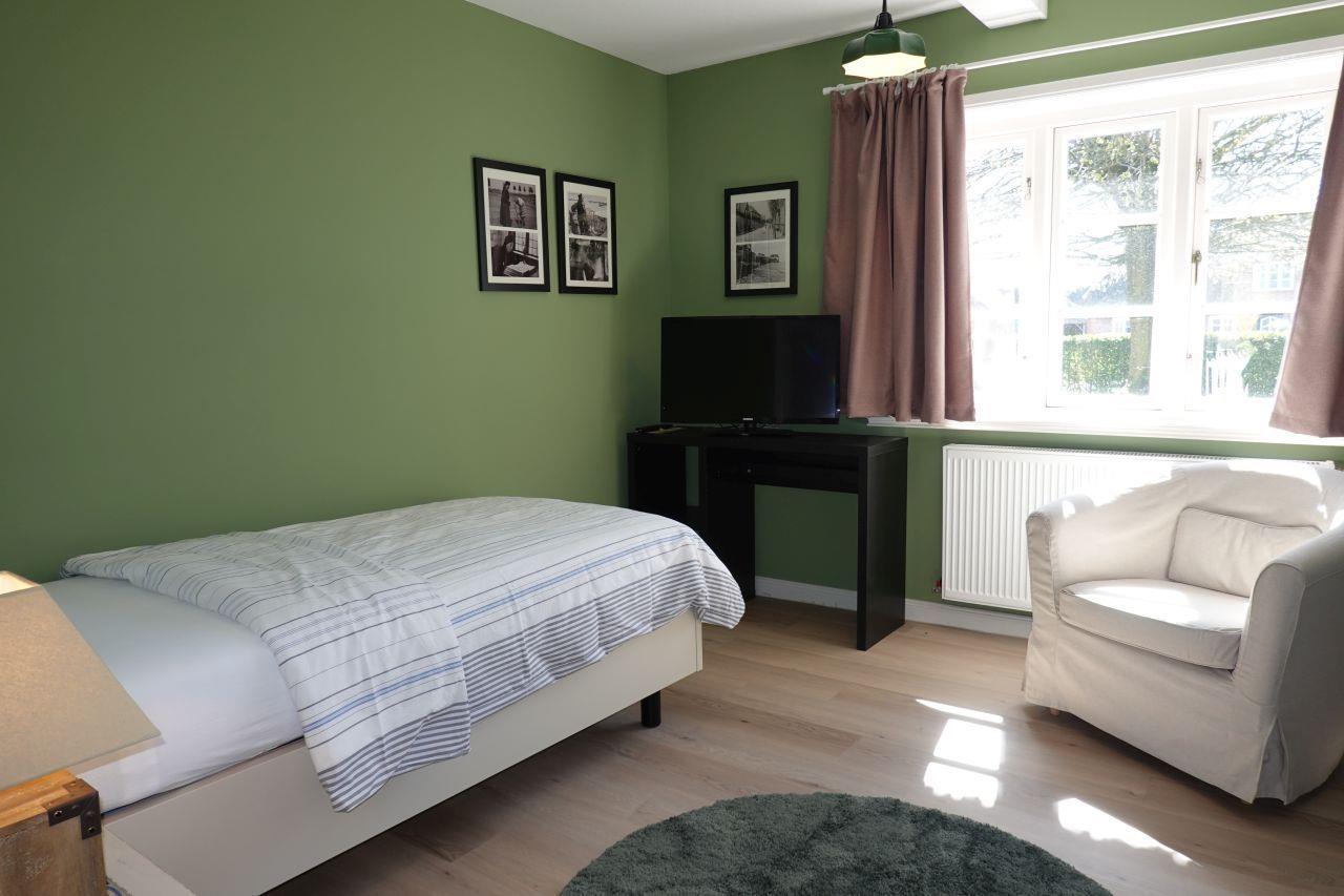 Im Elternschlafzimmer trifft Tradition auf Komfort: Die Delfter Kacheln setzen auch hier stilvolle Akzente, das neue Doppelbett sorgt für erholsamen Schlaf. Für kleine Gäste stehen zwei separate Kinderzimmer zur Verfügung – jeweils mit Einzelbett, eines davon lässt sich bei Bedarf zu einem zweiten Bett erweitern.