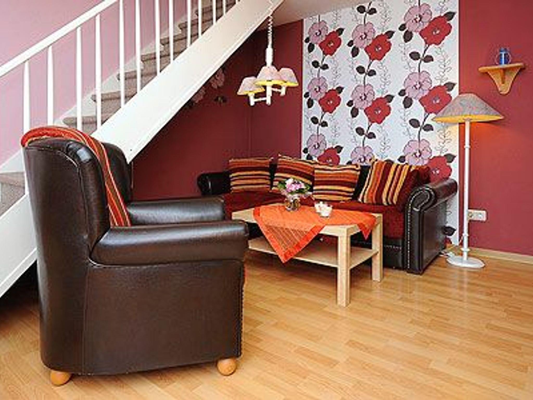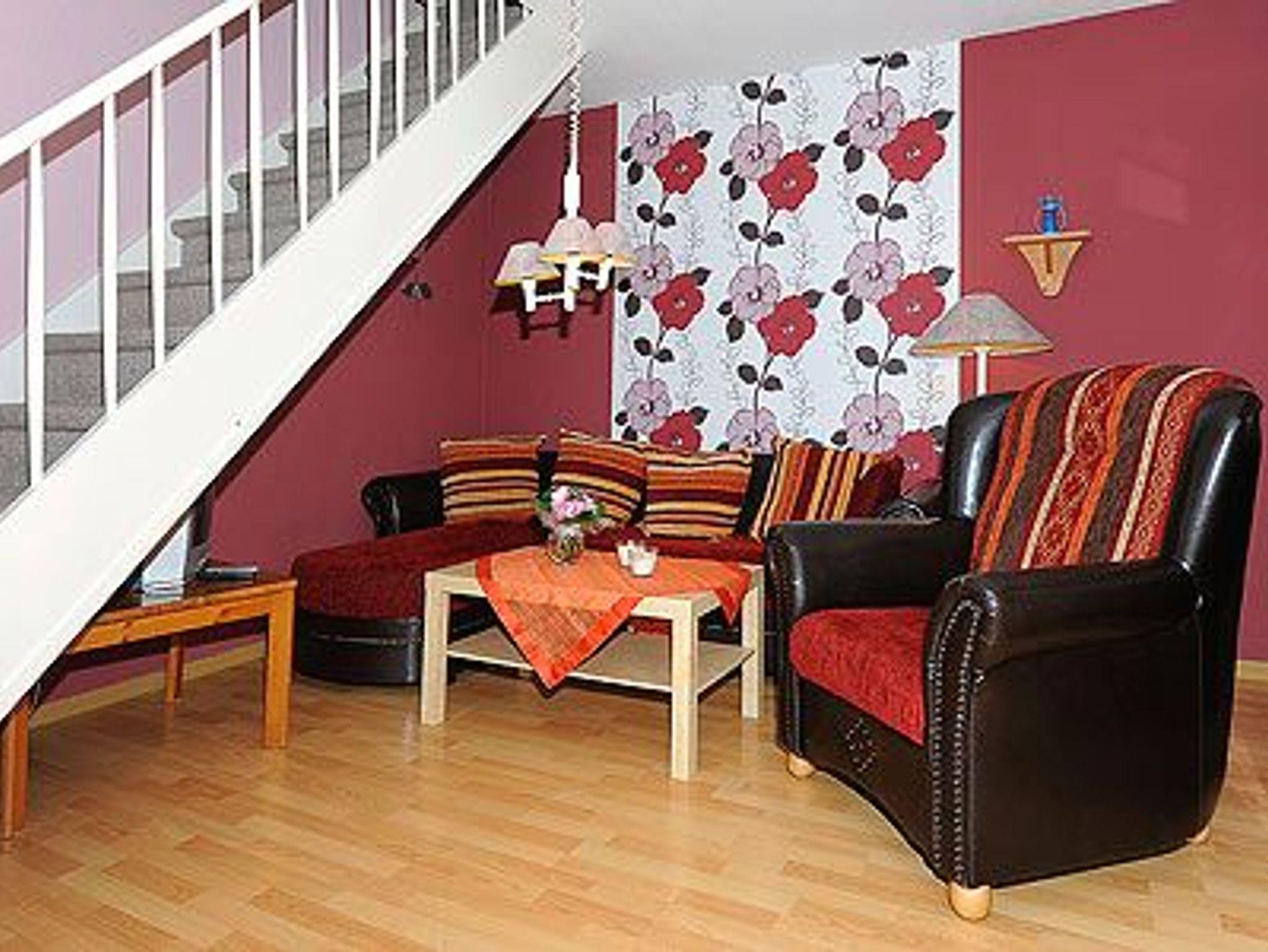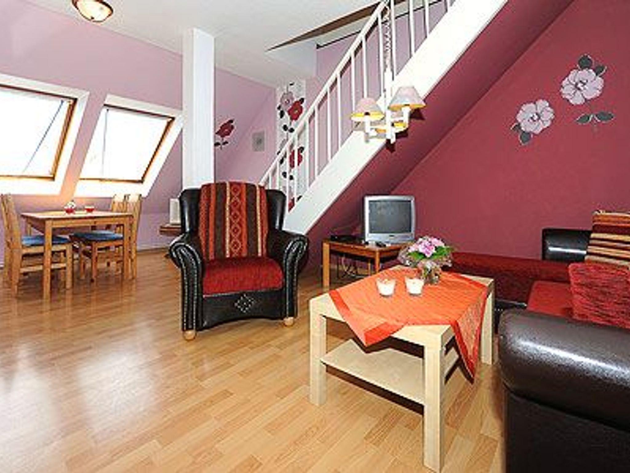 Größe ca. 65 Quadratmeter, Wohnraum mit integrierter Küche, Schlafzimmer, zweites separates, Schlafzimmer/Kinderzimmer, Badezimmer mit Dusche, Waschtisch und WC, Obergeschoss, Terrasse (Sitzgruppe im Garten), optimal für 2 bis 5 Personen und zusätzlich ein Kleinkind.