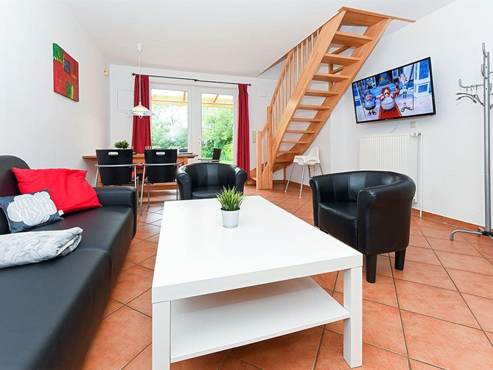 Größe ca. 60 Quadratmeter, Wohnzimmer, Küche, Schlafzimmer, zweites separates Schlafzimmer/Kinderzimmer, Badezimmer mit Dusche, Waschtisch und WC, Erdgeschoss, Terrasse, optimal für 2 bis 5 Personen und zusätzlich ein Kleinkind.