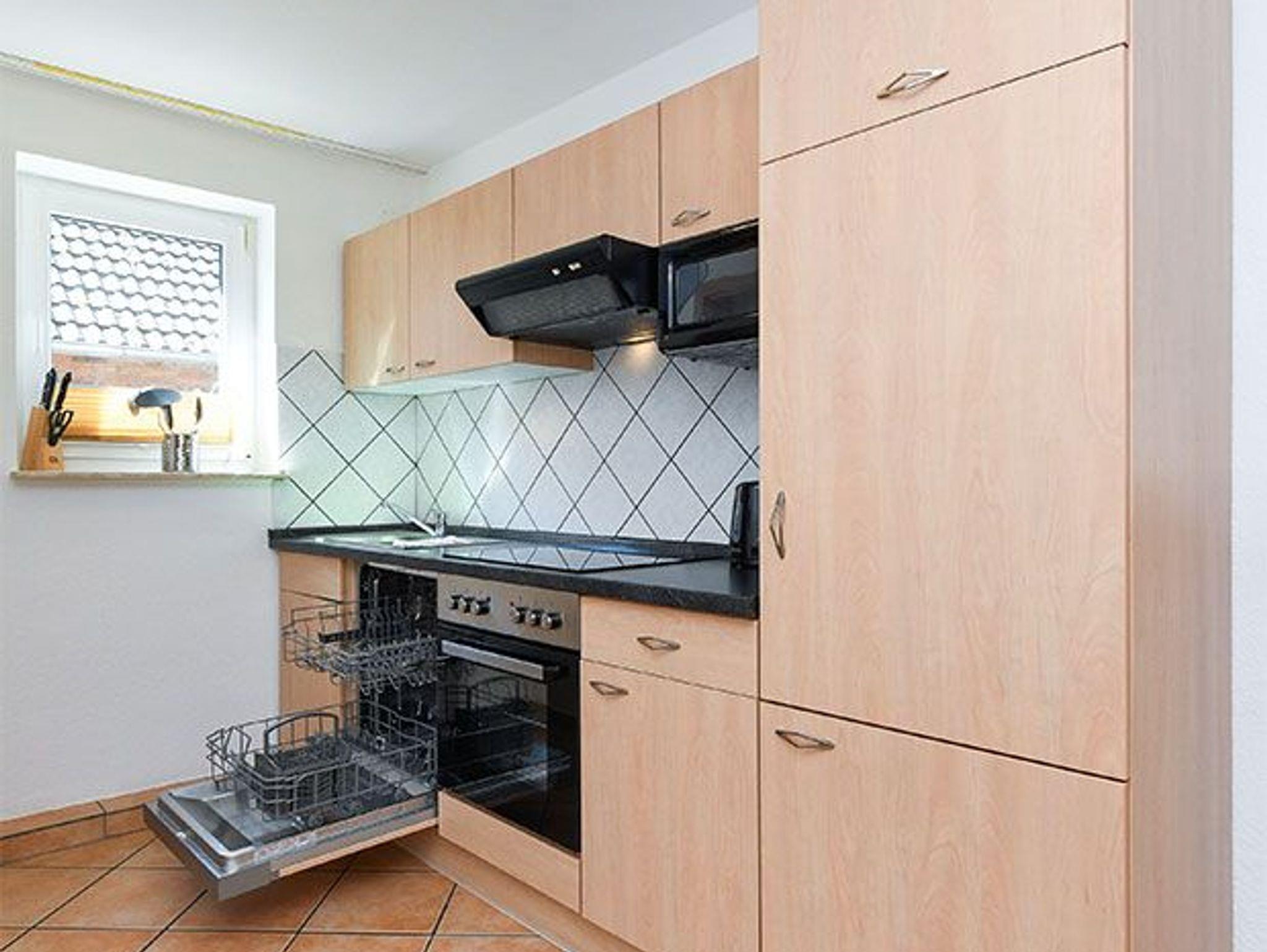 Größe ca. 60 Quadratmeter, Wohnzimmer mit integrierter Küche, Schlafzimmer, zweites separates Schlafzimmer/Kinderzimmer, Badezimmer mit Dusche, Waschtisch und WC, Erdgeschoss, Terrasse, optimal für 2 bis 5 Personen und zusätzlich ein Kleinkind.