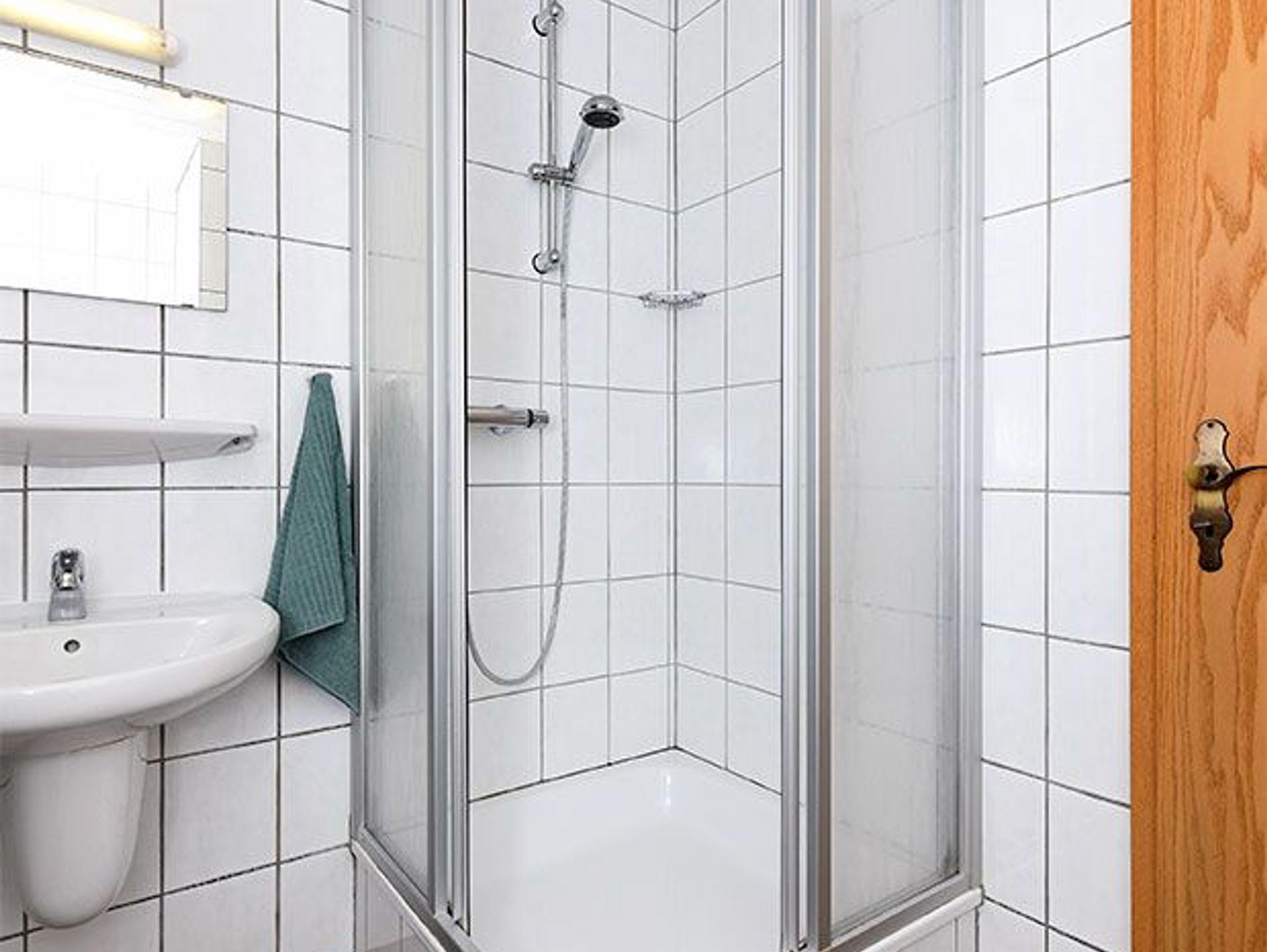 Badezimmer mit Dusche, Waschtisch und WC