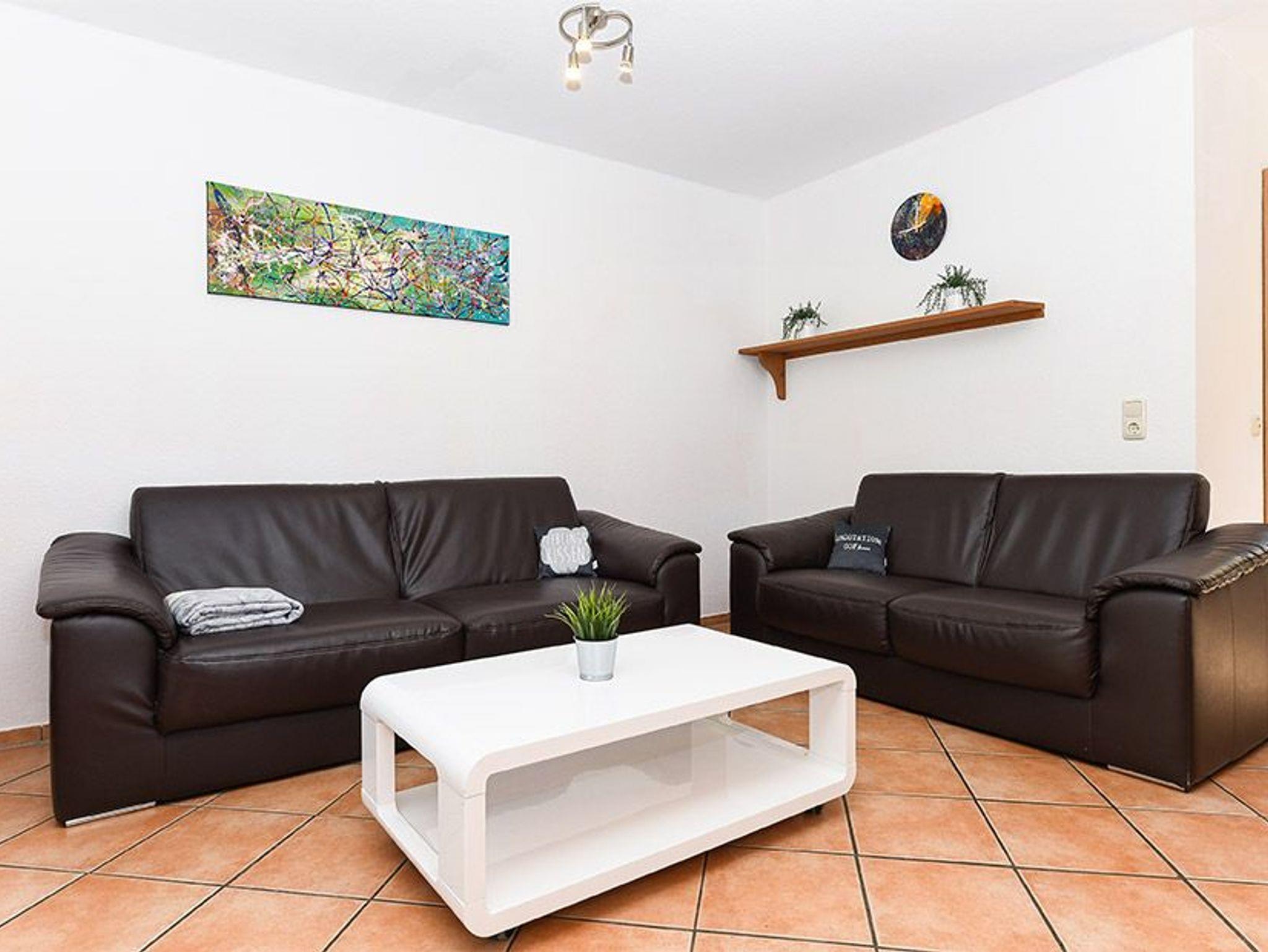 Größe ca. 60 Quadratmeter, Wohnzimmer mit integrierter Küche, Schlafzimmer, zweites separates Schlafzimmer/Kinderzimmer, Badezimmer mit Dusche, Waschtisch und WC, Erdgeschoss, Terrasse, optimal für 2 bis 5 Personen und zusätzlich ein Kleinkind.