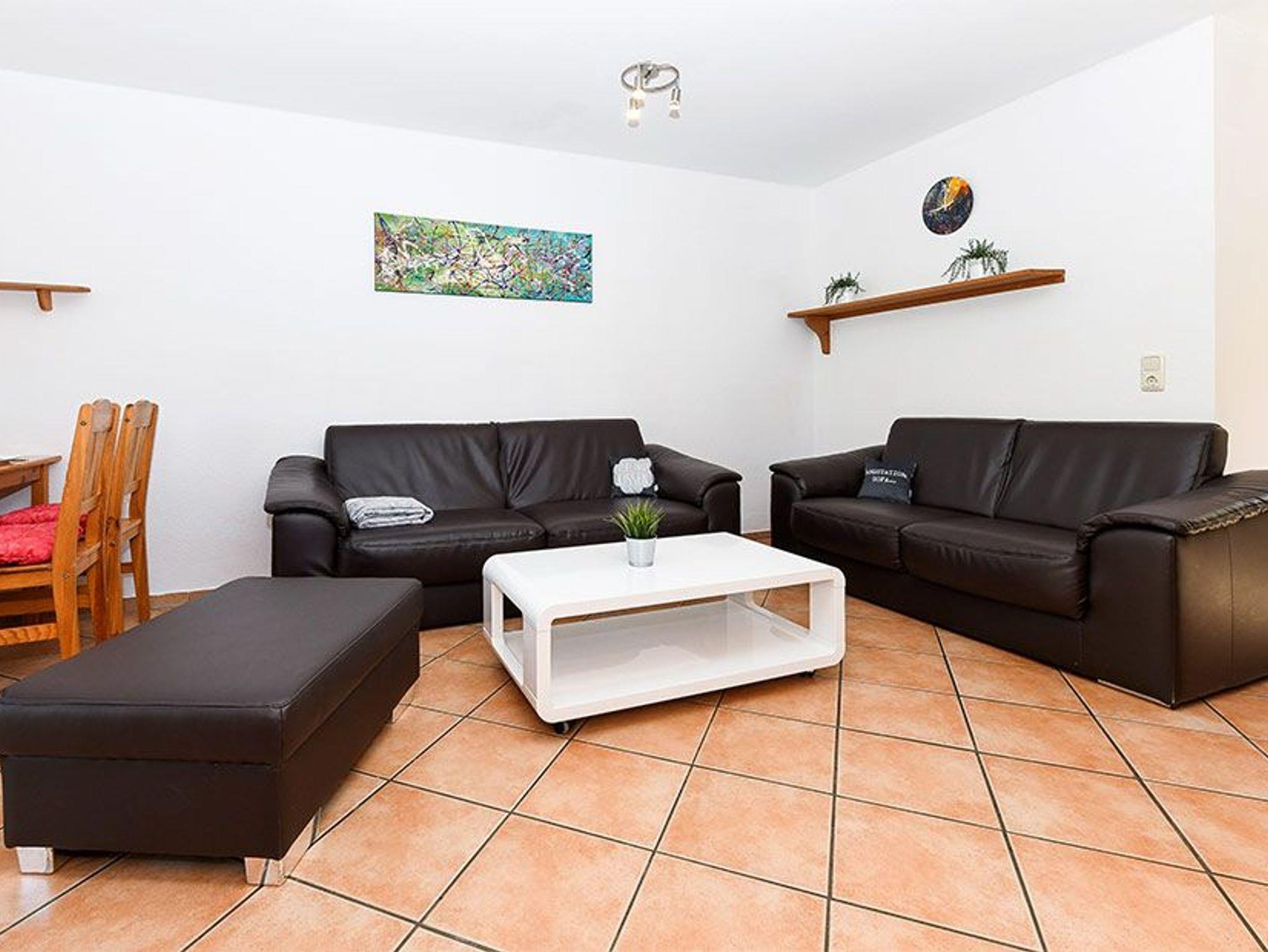 Größe ca. 60 Quadratmeter, Wohnzimmer, Küche, Schlafzimmer, zweites separates Schlafzimmer/Kinderzimmer, Badezimmer mit Dusche, Waschtisch und WC, Erdgeschoss, Terrasse, optimal für 2 bis 5 Personen und zusätzlich ein Kleinkind.