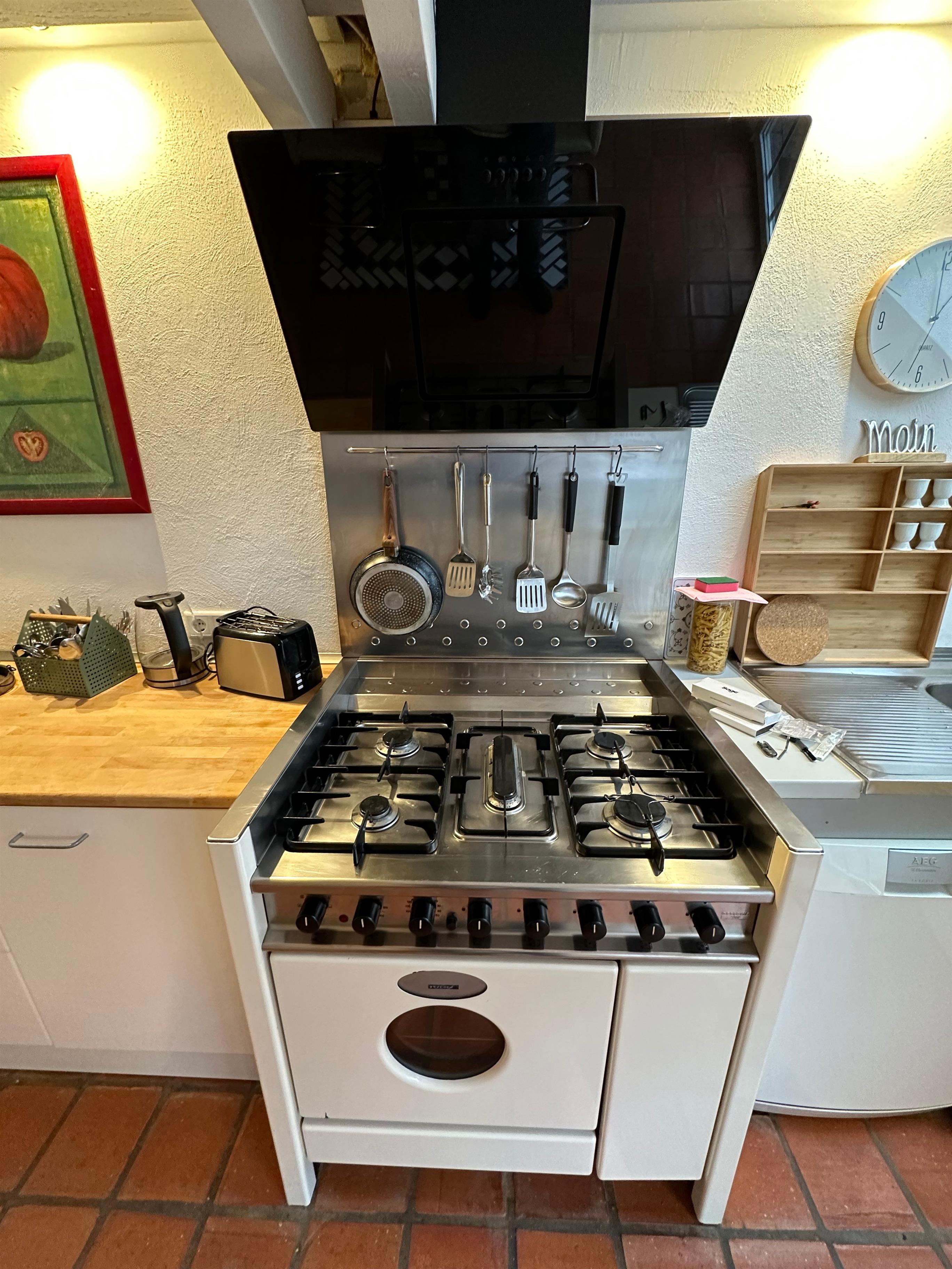 Komfortausstattung Kochen (Töpfe, Bratpfanne, Salz, Pfeffer und Öl)