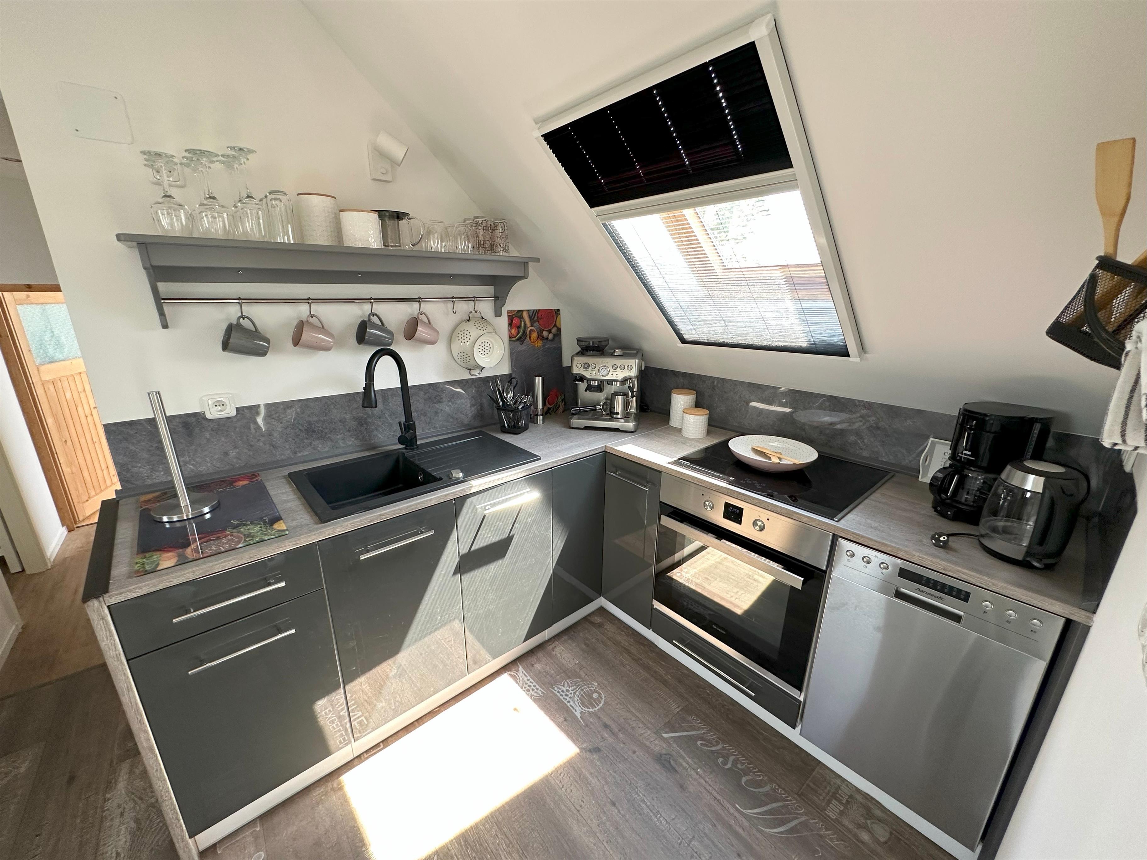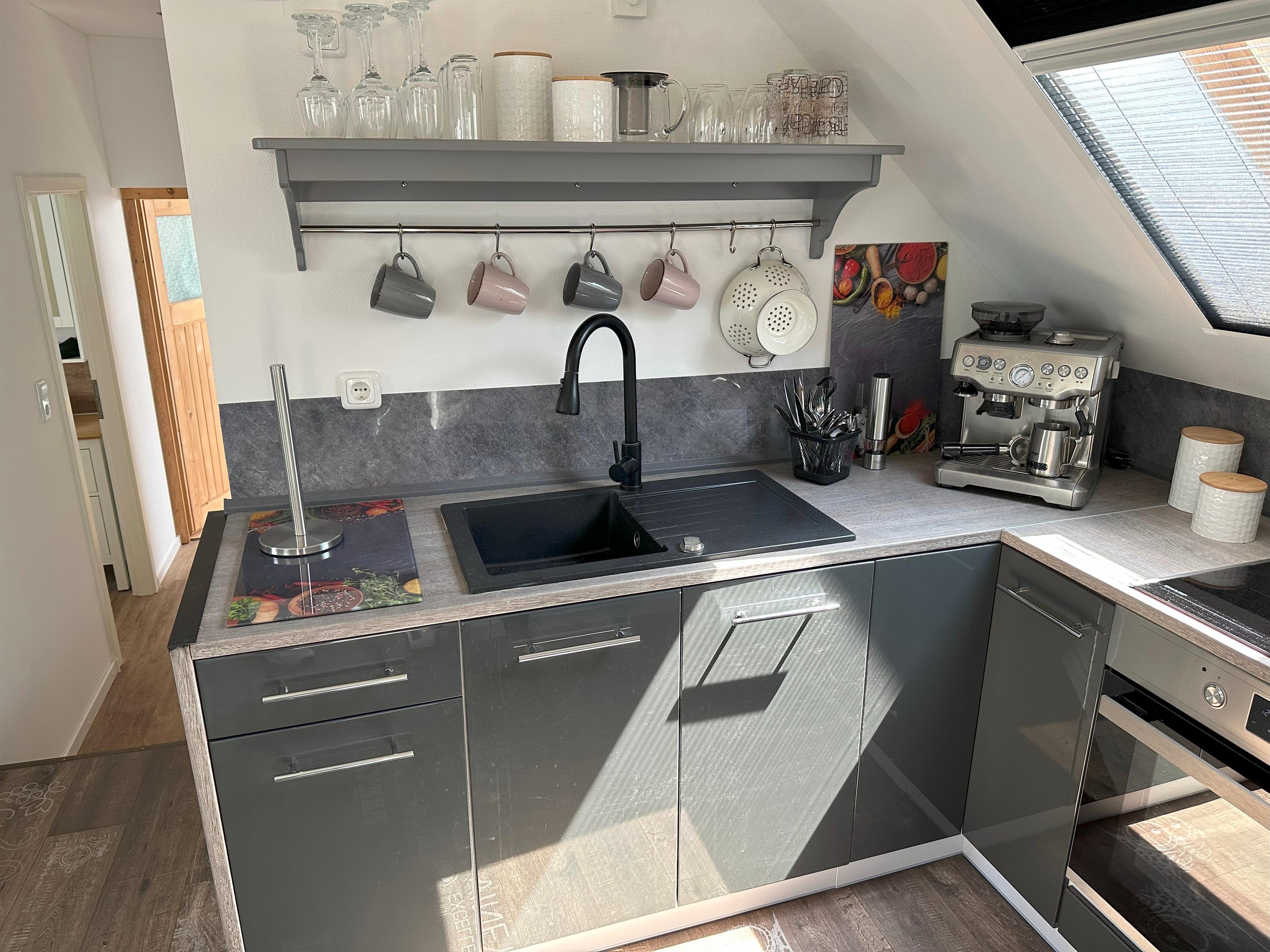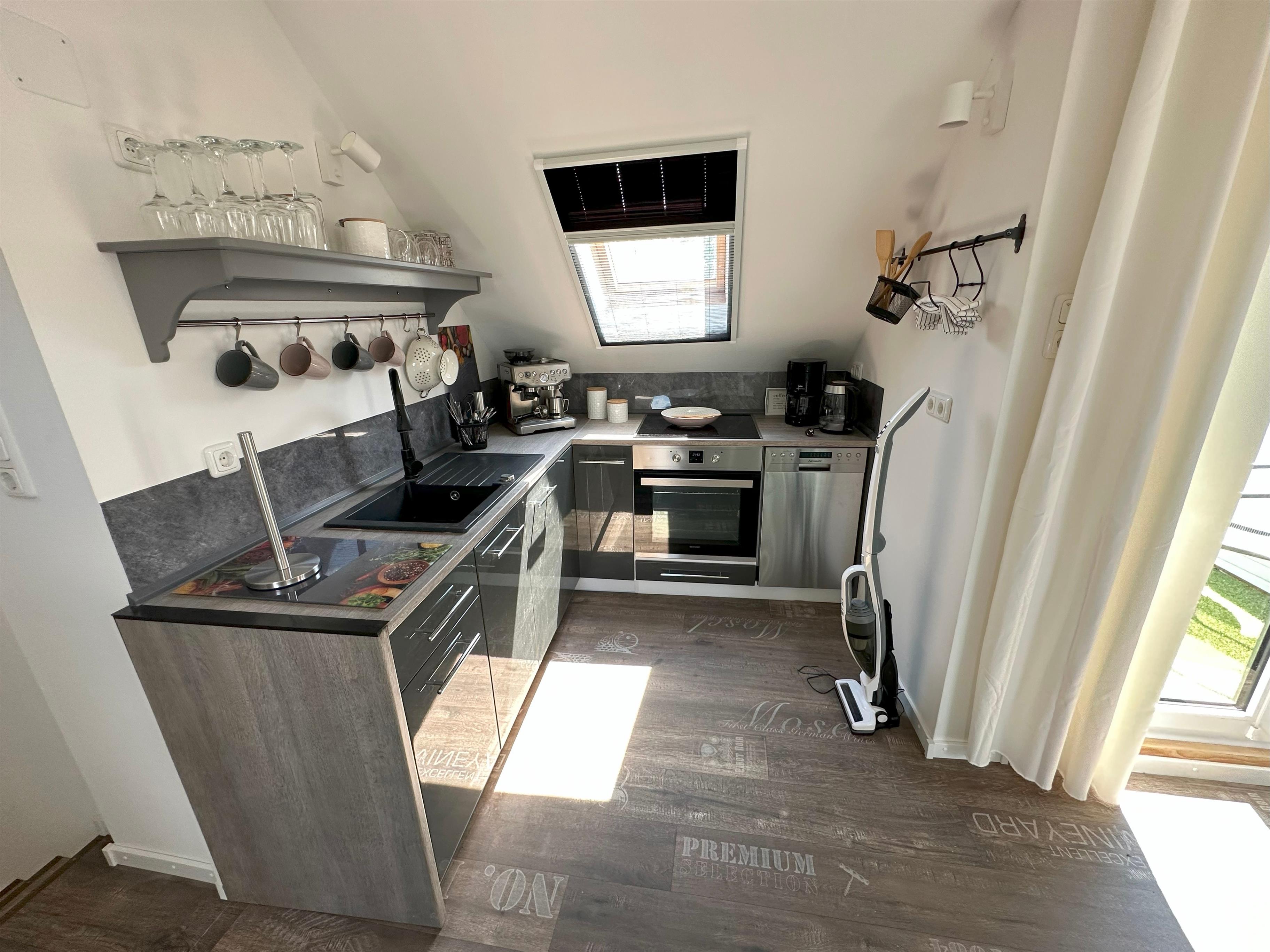 Moderne Dachgeschosswohnung in Osteel mit Loggia, ideal für 2 Personen, mit umfassender Küchenausstattung und ruhiger Lage.