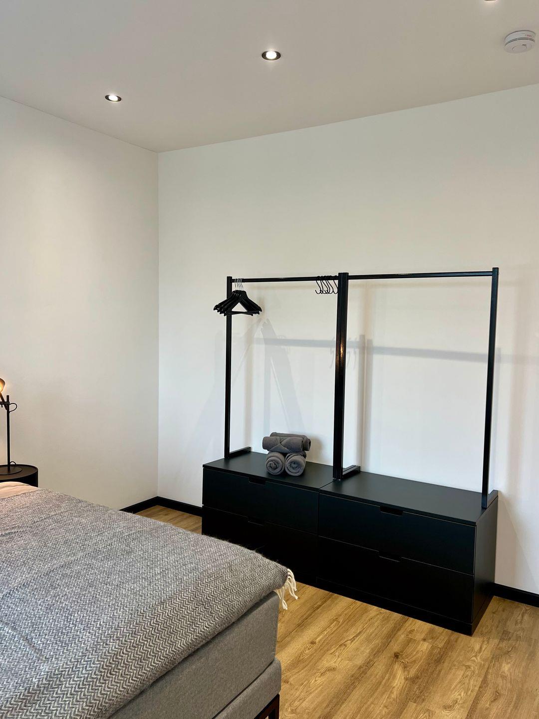 Im Eingangsbereich des Apartments befindet sich eine Garderobe. Innerhalb des Gebäudekomplexes steht dir eine Waschmaschine mit Waschmittel sowie ein Trockner zur Verfügung. Diese kannst du gegen eine Gebühr von jeweils 2,50 € je Wäsche bzw. Trocknung nutzen. Die Bezahlung und Reservierung der Maschinen läuft unkompliziert über die App „WeWash“. Ein Wäscheständer, ein Bügeleisen, ein Bügelbrett sowie ein Staubsauger stehen für dich im Waschraum zur Nutzung bereit.
