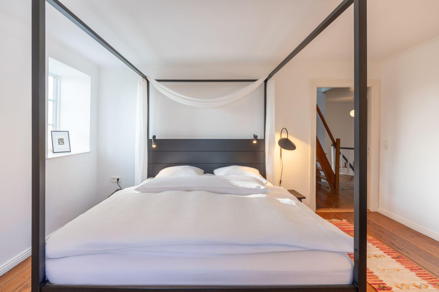 Die Villa Morgenthau aus dem Jahr 1867 wurde 2024 umfassend renoviert und erstrahlt nun in neuem Glanz. Auf 200 m² Wohnfläche finden bis zu sieben Personen Platz, ideal für Familien oder Gruppen. Vier stilvoll eingerichtete Schlafzimmer, zwei moderne Badezimmer (eins mit bodengleicher Dusche), und ein gemütliches Wohnzimmer mit Kaminofen schaffen eine behagliche Atmosphäre.