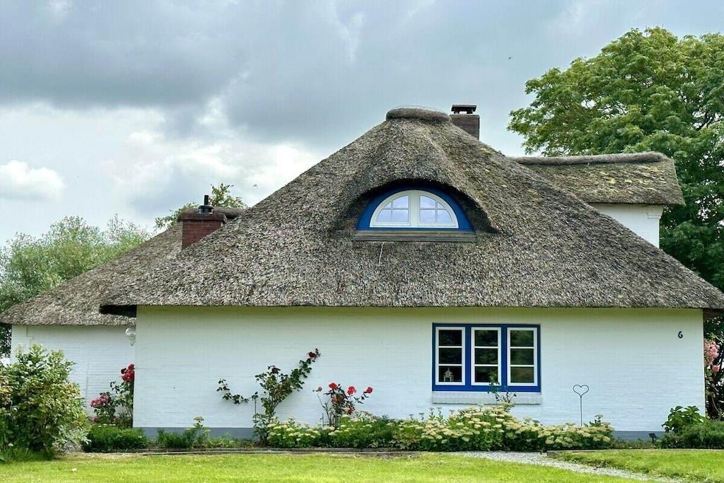 Modernes Reetdachhaus mit drei Schlafzimmern in ruhiger Alleinlage nahe der Nordsee.