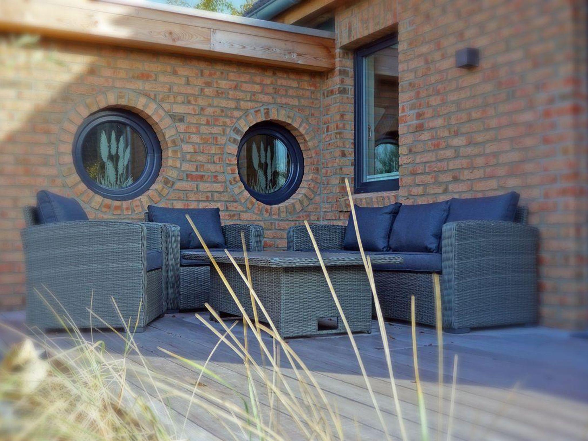Erleben Sie Komfort und Entspannung im stilvollen Püppi Hems Huus an der Nordseeküste mit Sauna und Garten.