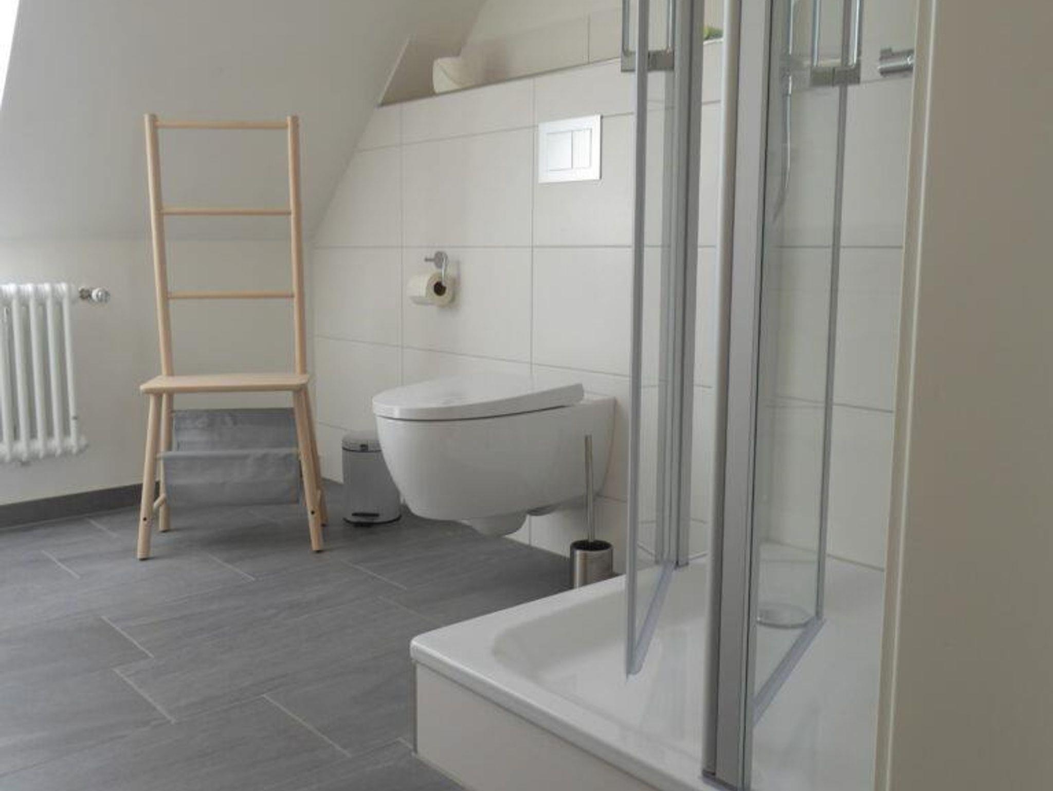 Duschbad mit ebenerdiger Dusche, Handtucherwärmung.